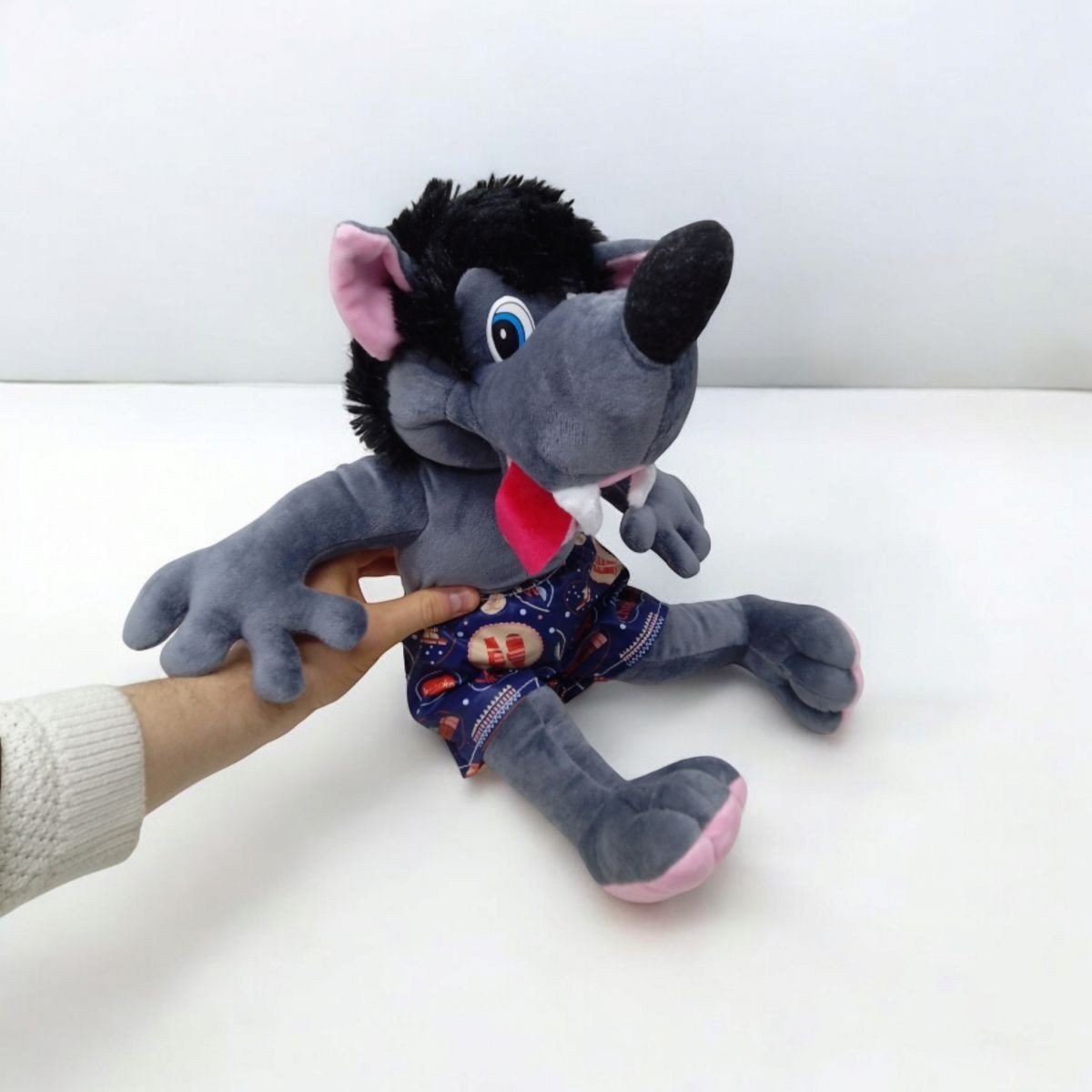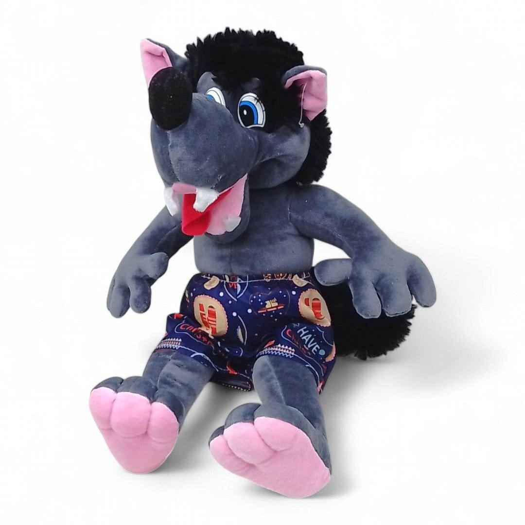 Кумедна плюшева іграшка у вигляді чудернацького мультяшного вовка. Обовʼязково порадує не тільки дітей, а й дорослих. У іграшки міцні, надійні шви та безпечний синтетичний наповнювач. Розмір іграшки - 47х17х17 см. Виконано з якісного та безпечного матеріалу. Для дітей старше 3-х років.