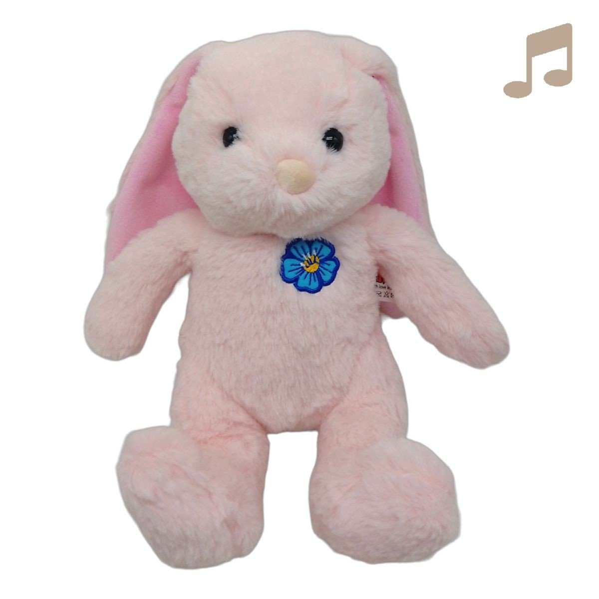 Чарівна мʼяка іграшка у вигляді рожевого кролика, який співає пісеньку українською мовою. Щоб мелодія почала грати, потрібно просто натиснути на квіточку на грудях у зайчика. Виконано з якісних та міцних матеріалів, іграшка дуже мʼяка та приємна на дотик. Розмір іграшки: 35х20х17 см.