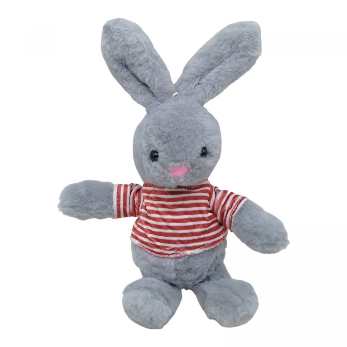 Мила мʼяка іграшка у вигляді кролика у футболці. Іграшка виконана з дуже ніжних і приємних на дотик матеріалів, якісні та міцні шви. Очі пластикові. Буде чудовим подарунком дитині будь-якого віку. Розмір іграшки: 30 х 22 х 11 см. Виготовлено в Україні.