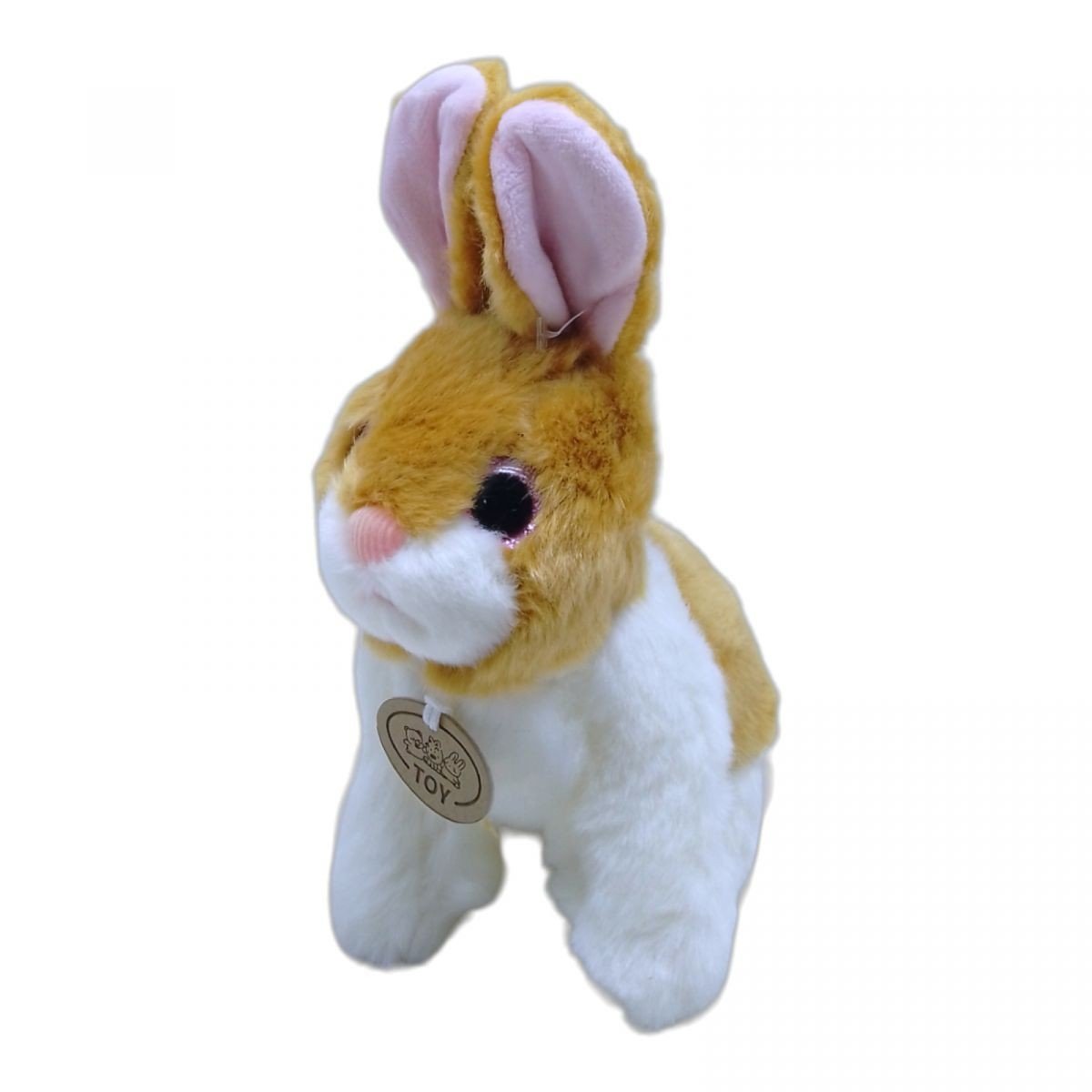 Чарівна мʼяка іграшка у вигляді кролика. Іграшка пухнаста і дуже приємна на дотик, зроблена з якісних матеріалів. У зайчика великі блискучі оченята. У вушках є гнучкий дріт, який дозволяє злегка змінювати їхнє положення. Розмір іграшки: 15 х 21 х 11 см.