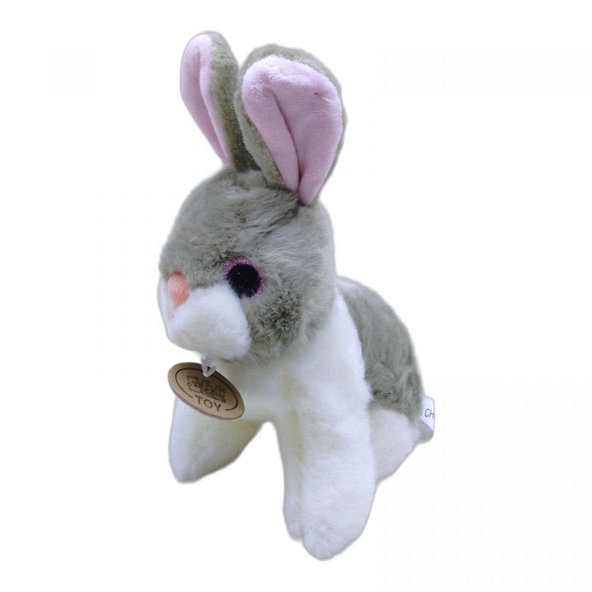 Чарівна мʼяка іграшка у вигляді кролика. Іграшка пухнаста і дуже приємна на дотик, зроблена з якісних матеріалів. У зайчика великі блискучі оченята. У вушках є гнучкий дріт, який дозволяє злегка змінювати їхнє положення. Розмір іграшки: 15 х 21 х 11 см.