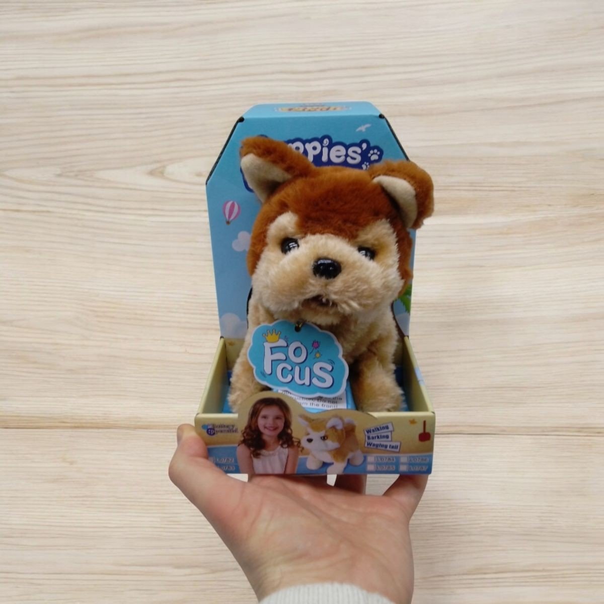 Цікава та мила іграшка-ходилка у вигляді маленького песика. Звірятка кумедно пересувається (ходить покочуючись зі сторони в сторону) та гавкає. Функціонує іграшка від двох батарейок АА (до комплекту не входять). Кнопка активації знаходиться на животику песика, поруч із відсіком для батарейок. Розмір іграшки: 15х15х9 см. Укомплектована в картонну коробочку-шоубокс у вигляді будки.