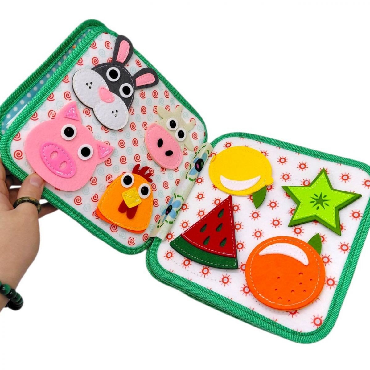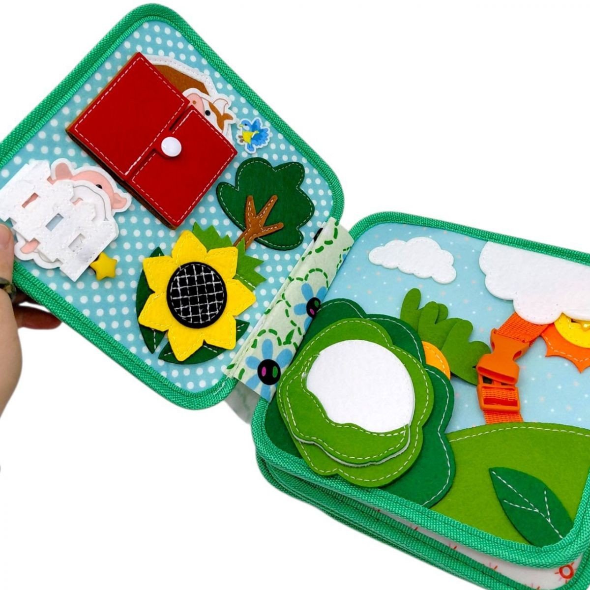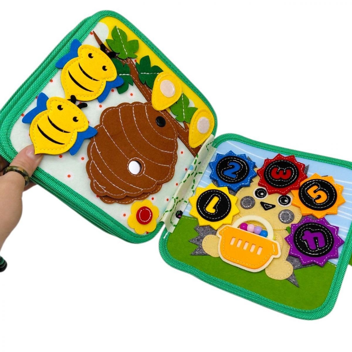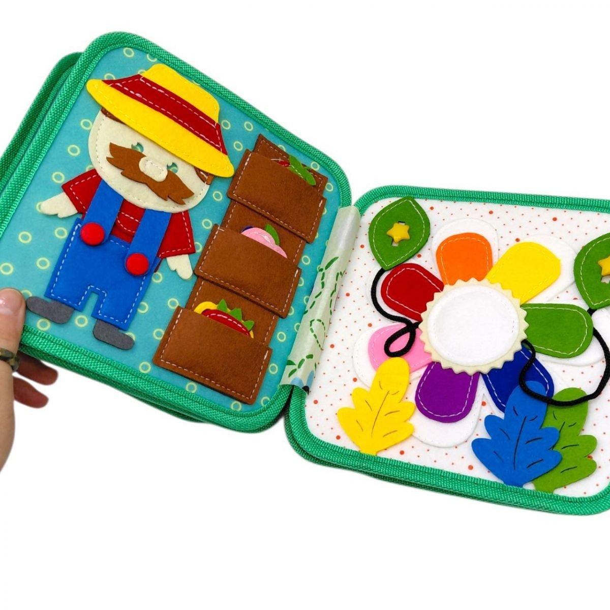 Малюки просто обожнюють щось крутити, застібати, відкривати й перевертати, тому ця м’яка книжка-бізіборд неодмінно стане їхньою улюбленою розвагою! Вона не лише дарує задоволення від гри, а й допомагає розвивати важливі навички - уважність, логіку, пам’ять і дрібну моторику. У кожній сторінці заховані захопливі завдання: сортування, шнурівка, ігри з липучками та вправи для пальчиків. Просто ідеальна іграшка для пізнання світу через гру! Книжка виконана в яскравому дизайні із зображенням милої корівки; Розмір складеної книжки: 21х5,5х21 см; Пальчикові ігри, елементи на липучках. Виконана з фетру. Розвиває дрібну моторику, логічне мислення та сенсорне сприйняття.
