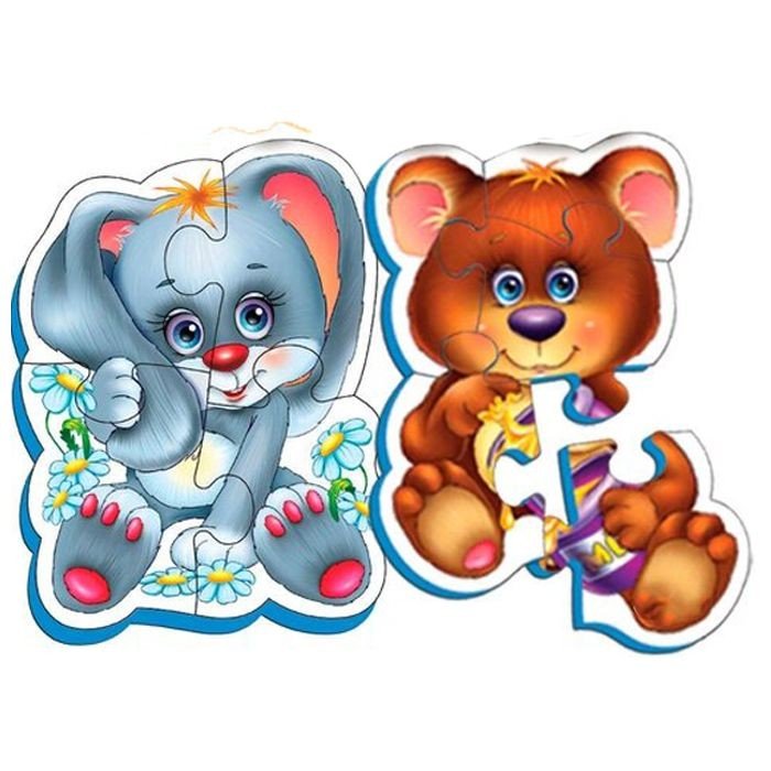 Мʼякі пазли для найменших. У комплекті: 2 пазли на 2 та на 4 елементи. Великі деталі ідеально підійдуть для дитячих ручок. Розмір готового зображення - приблизно 17 х 11 см. Пазли виготовлені з якісних та безпечних матеріалів. Для дітей віком від 3-х років.