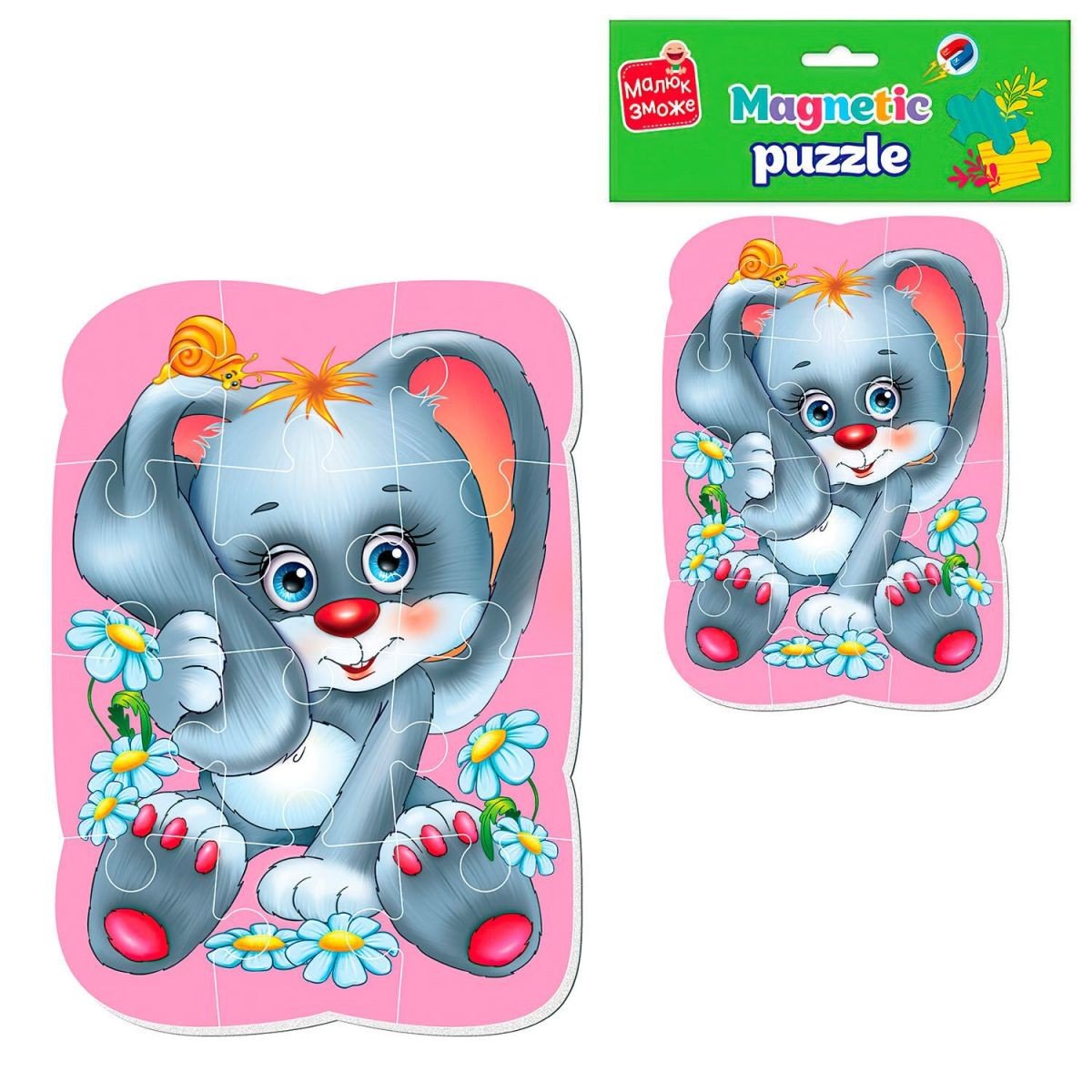 Мʼякі магнітні пазли для найменших. Дитина зможе зібрати яскраву картинку із 12-ти елементів. Збирати можна на магнітній дошці чи холодильнику. Великі деталі ідеально підійдуть для дитячих ручок. Розмір готового зображення: 16х23 см. Пазли виготовлені з якісних та безпечних матеріалів. Для дітей віком від 3-х років.