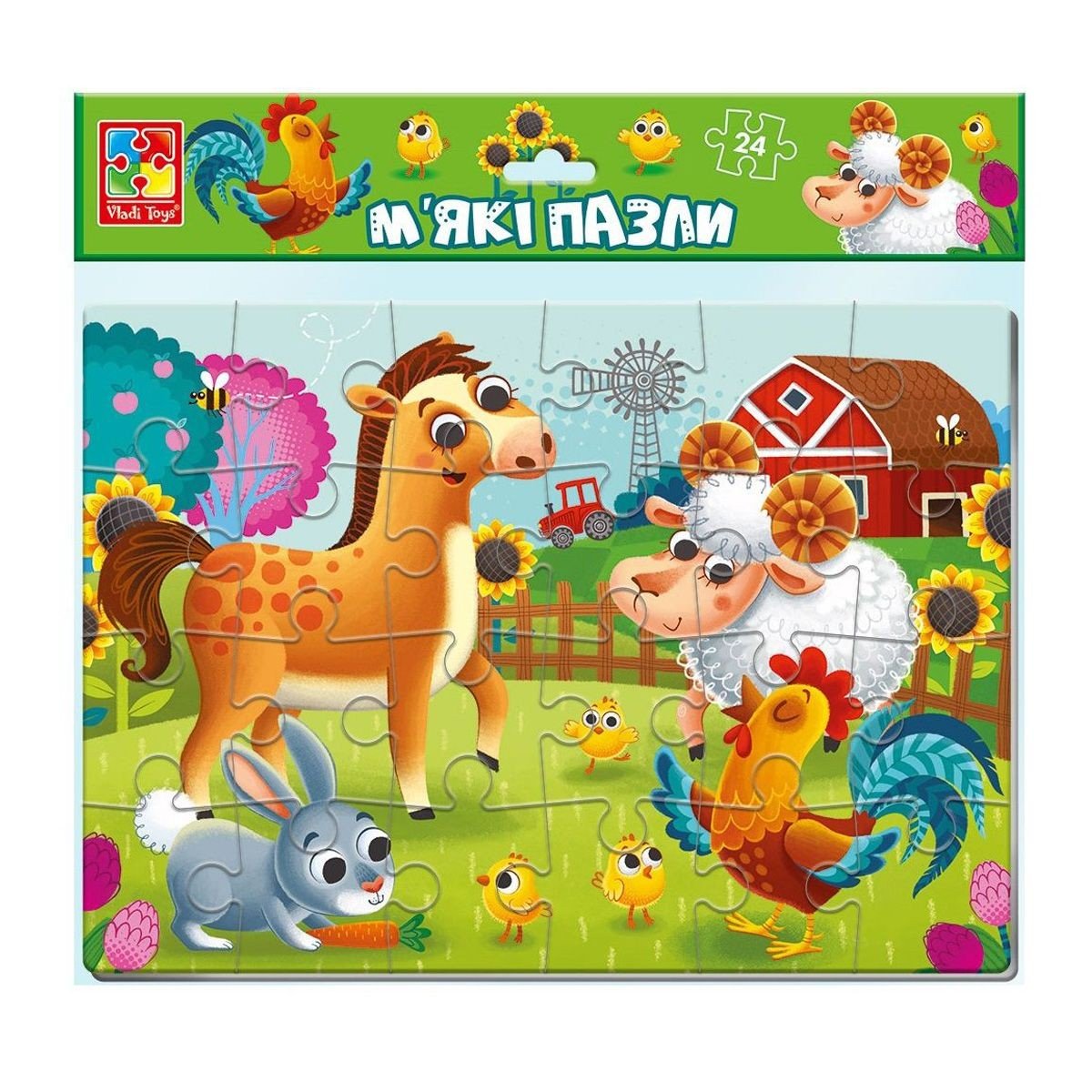 Яскраві м'які пазли на 24 елементів. Великі, м'які і приємні на дотик деталі. Розмір готового малюнка 33 х 23,5 см.