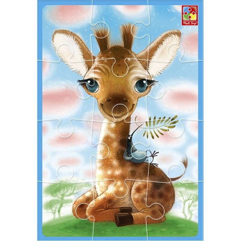 Мʼякі пазли із зображенням милого жирафу формату А5. Великі деталі ідеально підійдуть для дитячих ручок. Розмір готового зображення - 16 х 24 см. Пазли виготовлені з якісних та безпечних матеріалів, мʼякі та приємні на дотик. Для дітей від 3-х років.