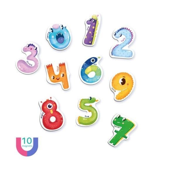 Магніти "Цифри". Набір із 10 магнітів у вигляді цифр (від 0 до 9) для гри на холодильнику або на дошці. За допомогою набору малюк вивчить цифри та числа. Гра розвиває дрібну моторику, увагу, візуальне сприйняття, пам'ять. Для дітей віком від 3-х років.