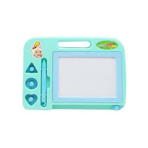 Яскрава пластикова дошка для малювання. Має магнітну основу. У наборі: магнітна ручка і 3 друку (у формі трикутника, кола і сердечка). Готовий малюнок можна стерти, потягнувши за бігунок внизу дошки.