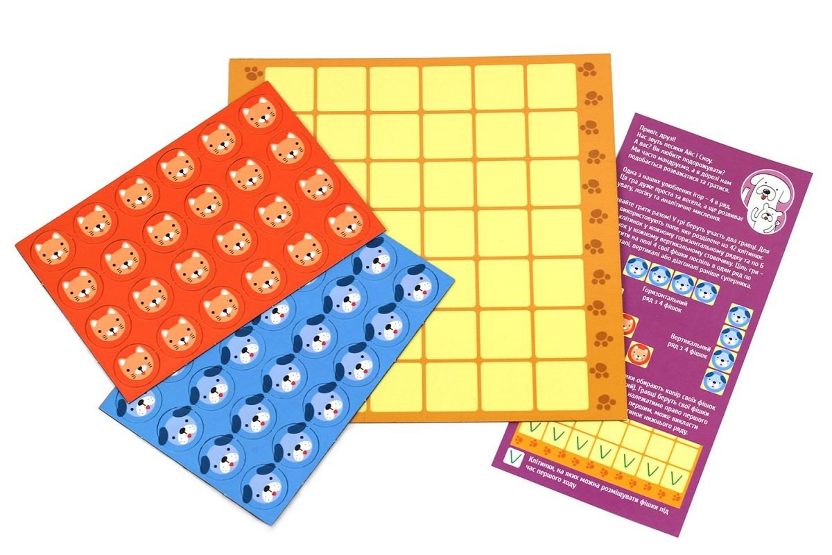 Магнітна настільна гра "4 в ряд". У грі можуть брати участь двоє гравців. Правила гри схожі на гру "Хрестики-нулики". Мета гри - першим розмістити 4 свої фішки в ряд по горизонталі, вертикалі або діагоналі (учасники по черзі розміщують по 1 своєї фішці на поле). Розмір ігрового поля - 18х18 см. Для дітей від 4-х років.