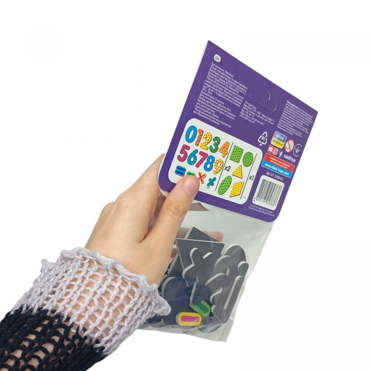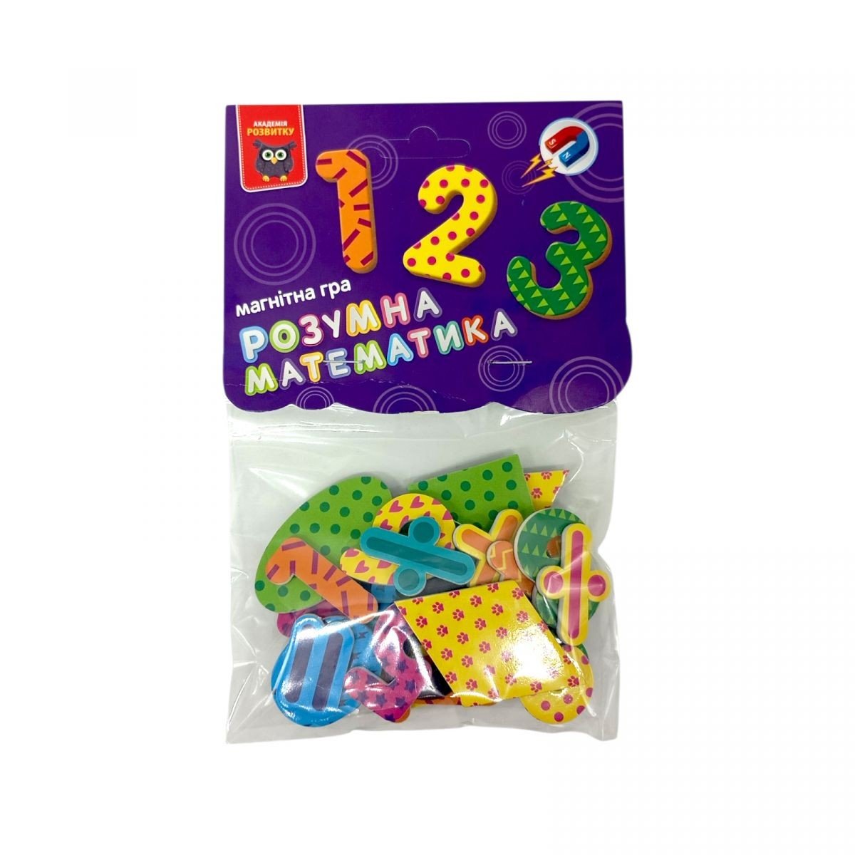 Бренд: Vladi Toys Упаковка: Пакет Колір: Різнобарв'я Тип ел-тів живлення: Немає Ел-ти живлення в комплекті: Ні Вага з упаковкою: 45 г Габарити в упаковці: 22 x 13.5 x 2 см Країна виробник: Україна Матеріал: Комбінований Комплектація: 32 магніту