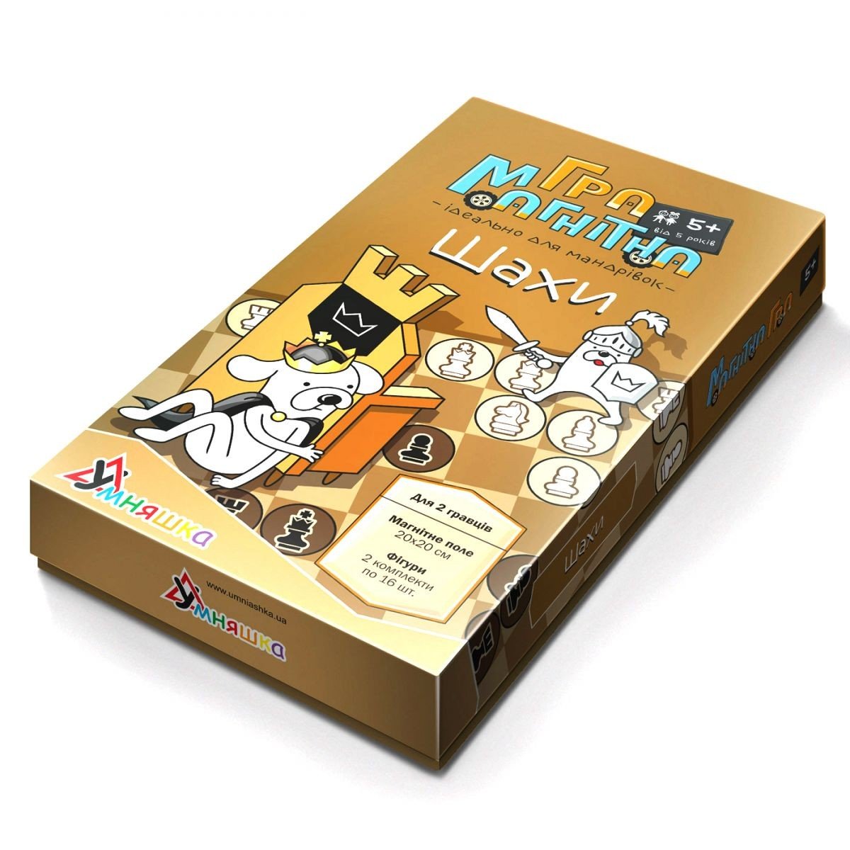 Настільна магнітна гра "Шахи". Фігурки в даній грі - магнітики круглої форми із зображенням шахових фігур. Розмір ігрового поля - 20х20 см. Виконаний набір з якісних і безпечних матеріалів. Для дітей від 5 років.