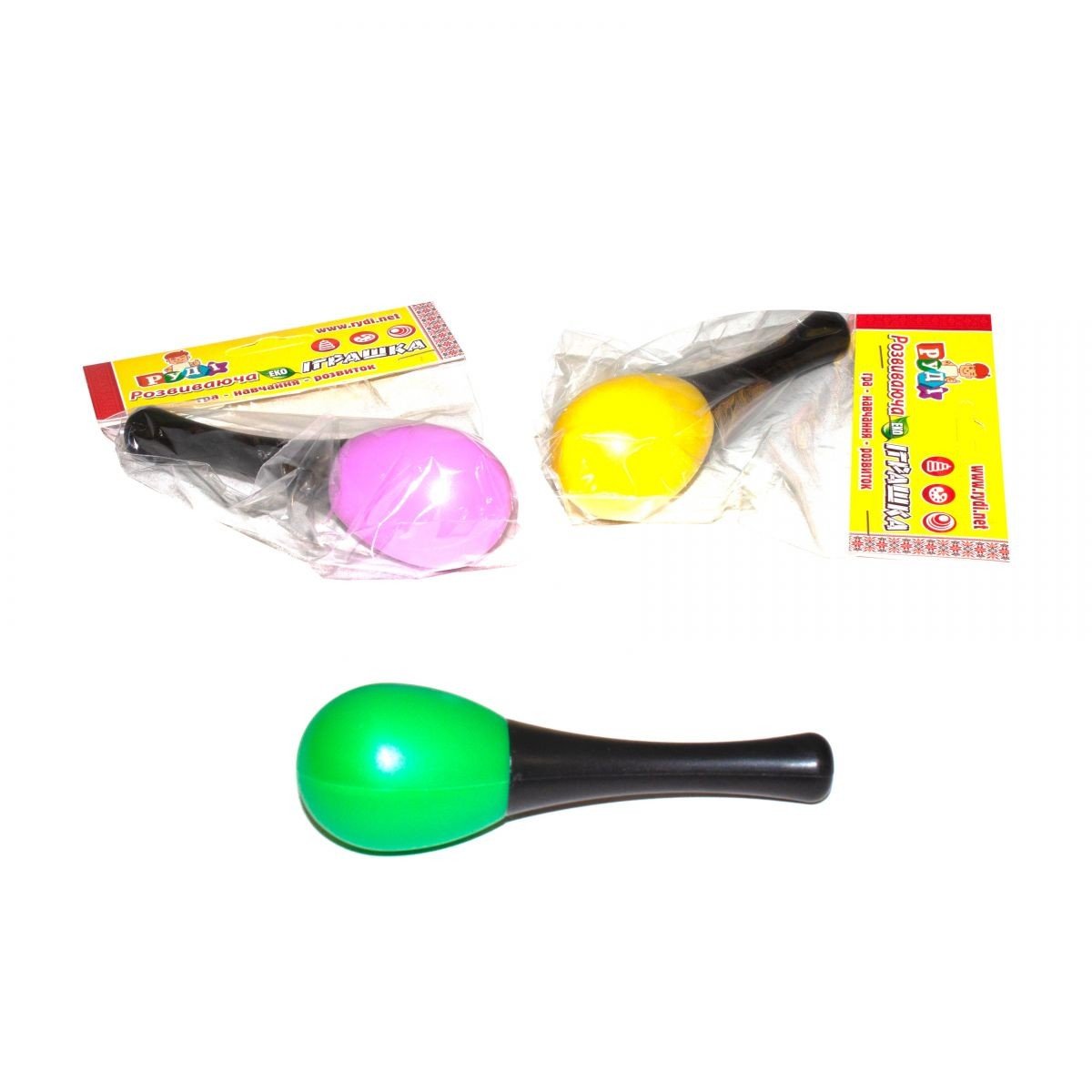 Маракас маленький. Усередині іграшки знаходяться кульки, які пересипаються, видаючи шарудять звуки. Різні види.