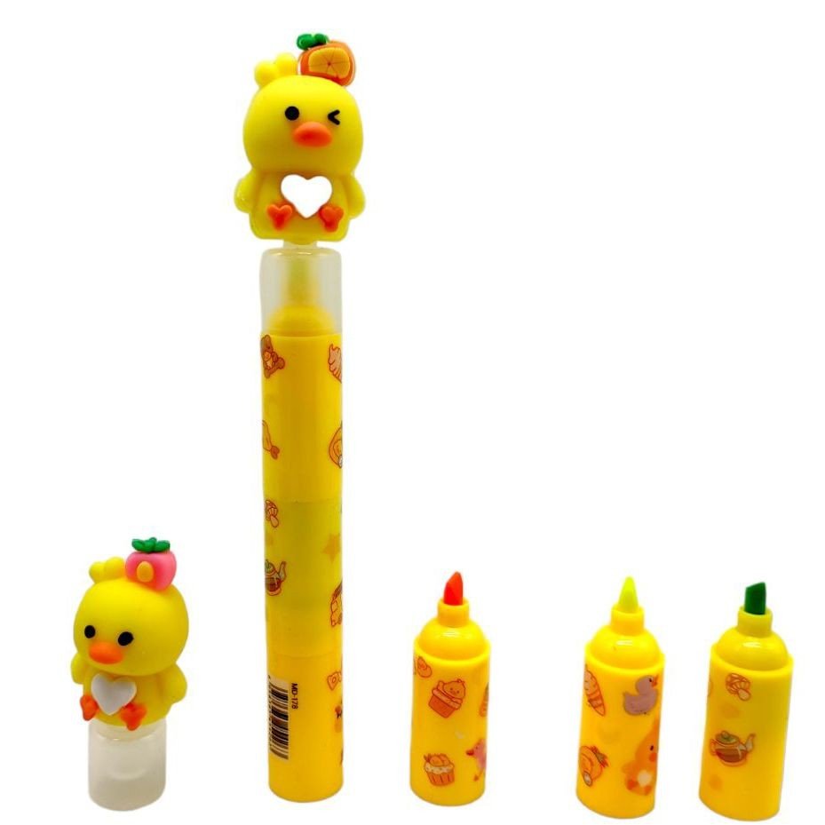 Маркер-хайлайтер 3в1, виконаний у дуже милому та зручному дизайні. Один маркер містить у собі відразу три кольори - рожевий, салатовий і блакитний. Легко розбирається на три мініатюрні маркери. Прикрашений чарівною гумовою фігуркою на ковпачку. Довжина у зібраному вигляді – 13 см. Різні види в асортименті.
