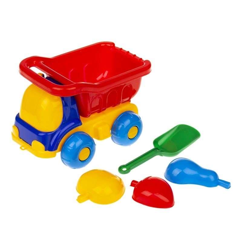 Машинка "Бджілка" з пісочним набором. У комплект входить: машинка самоскид з кузовом, лопатка і 3 п асочкі. З цим набором дитина зможе грати як вдома, так і на вулиці. Виконаний з якісного пластику. Для дітей від 3-х років.