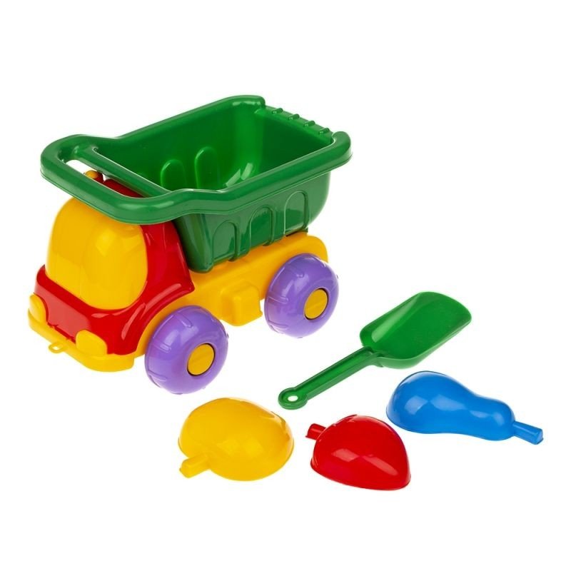 Машинка "Бджілка" з пісочним набором. У комплект входить: машинка самоскид з кузовом, лопатка і 3 п асочкі. З цим набором дитина зможе грати як вдома, так і на вулиці. Виконаний з якісного пластику. Для дітей від 3-х років.