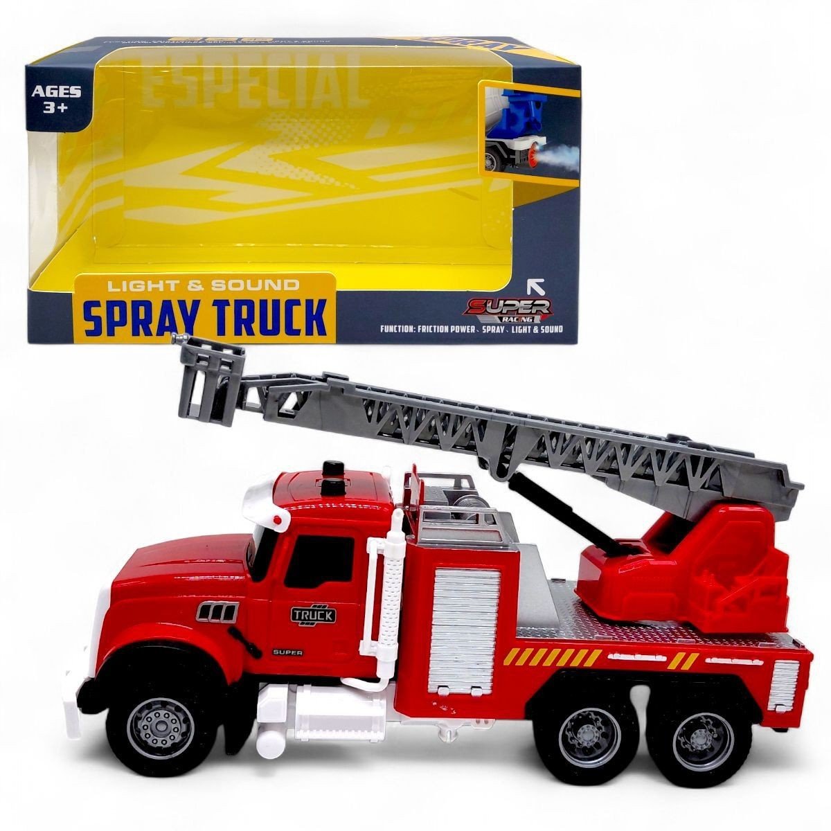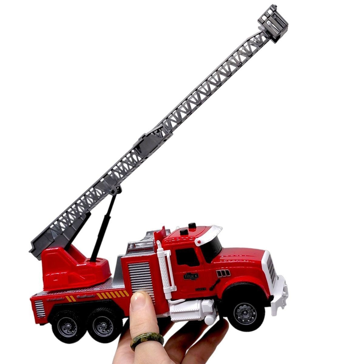Іграшкова пожежна машина - це модель спецтранспорту з інерційним механізмом, який дозволяє машині рухатися вперед після легкого поштовху. Під час гри активуються світлові та звукові ефекти, що імітують роботу справжньої пожежної техніки.