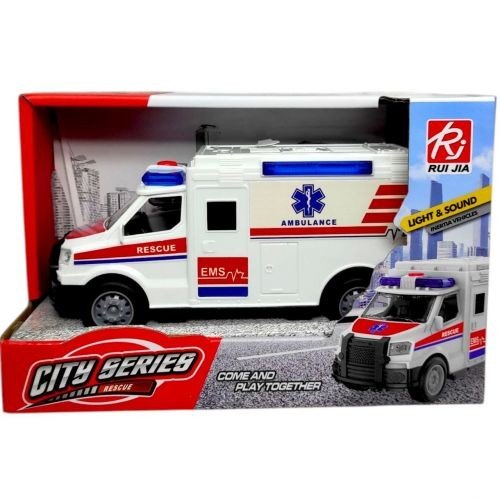 Машина інерційна "Швидка допомога" озвучена, зі світлом, в коробці (23x10,5x15 см)