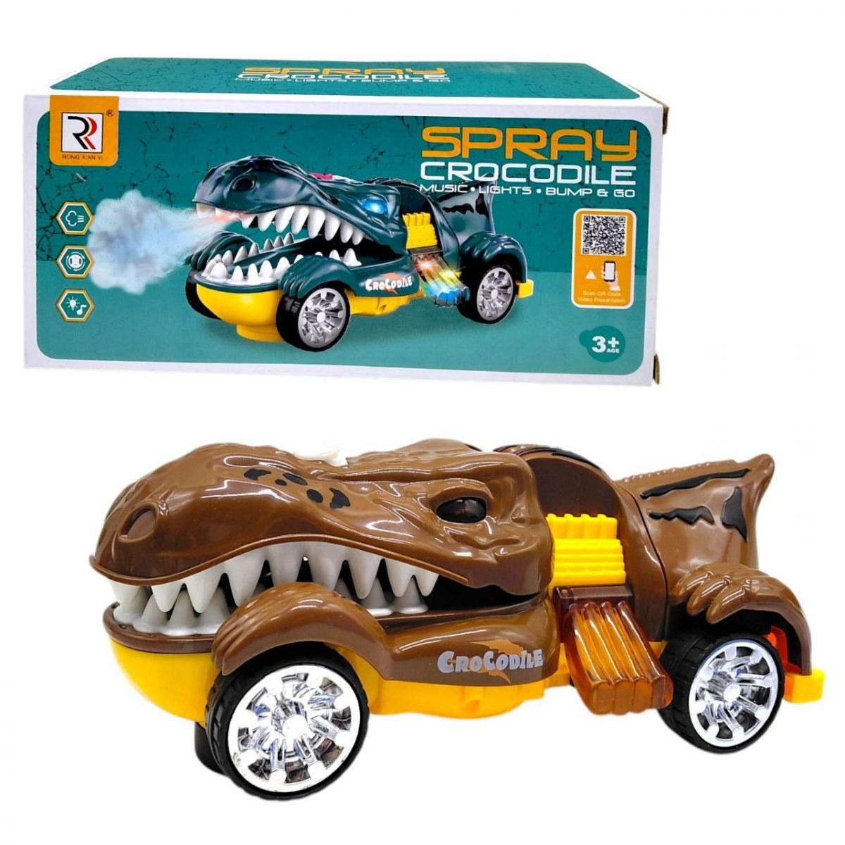 Машина «Крокодил» - це інерційна модель з ефектами світла, музики та диму. Після легкого поштовху автомобіль рухається вперед, а під час роботи активуються звукові та світлові сигнали.