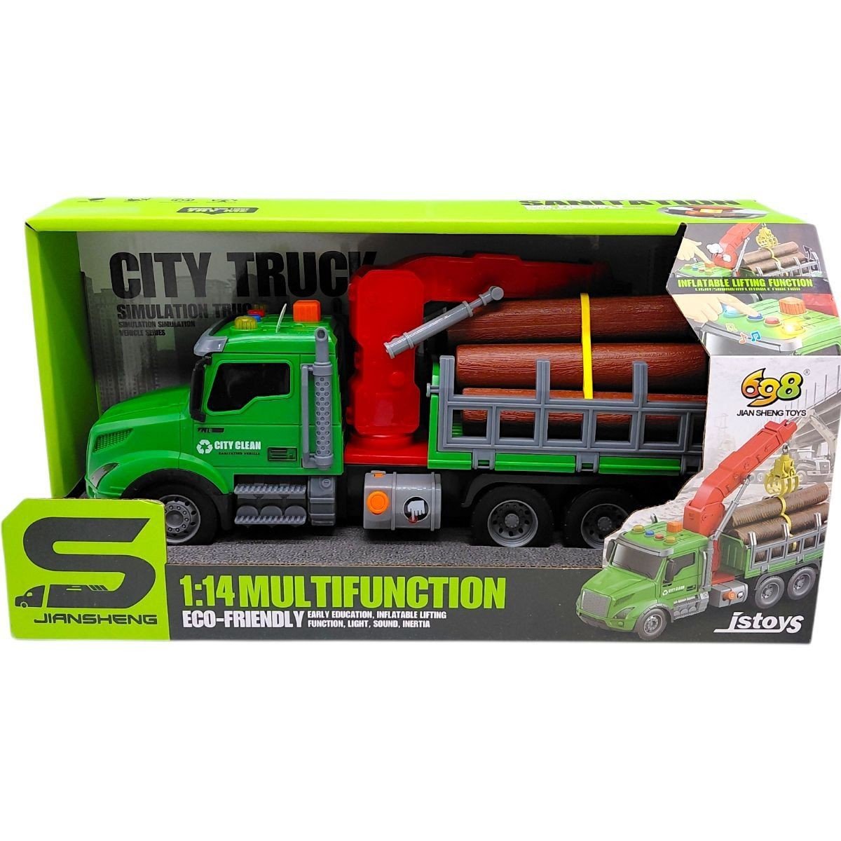 Іграшкова машина-лісовоз із маніпулятором - реалістична спецтехніка для сюжетних ігор. Модель оснащена інерційним механізмом, світловими та звуковими ефектами, що робить гру більш динамічною. Рухомий маніпулятор дозволяє імітувати процес завантаження колод. Великий розмір моделі підходить для дітей від приблизно 3 років.