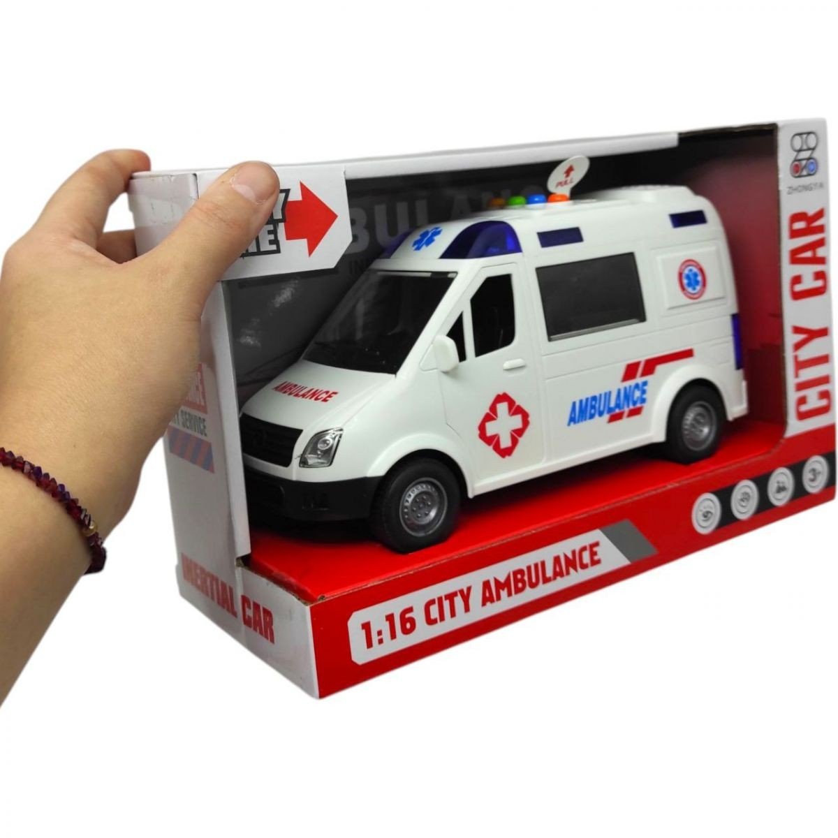 Опис Машина "Швидка допомога" світло,звук, бризкає водою (короб, 26*11,5*16,5см)
