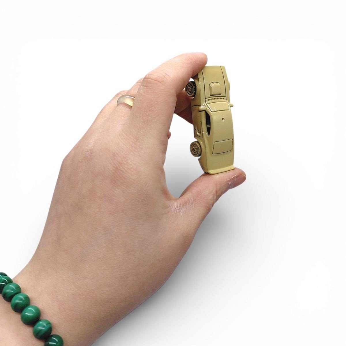 Модель виготовлена з поєднання металу та пластику, що забезпечує міцність корпусу та збереження форми під час активної гри. Завдяки компактним габаритам автомобіль зручно тримати в руці, брати із собою в дорогу або використовувати в сюжетних іграх.