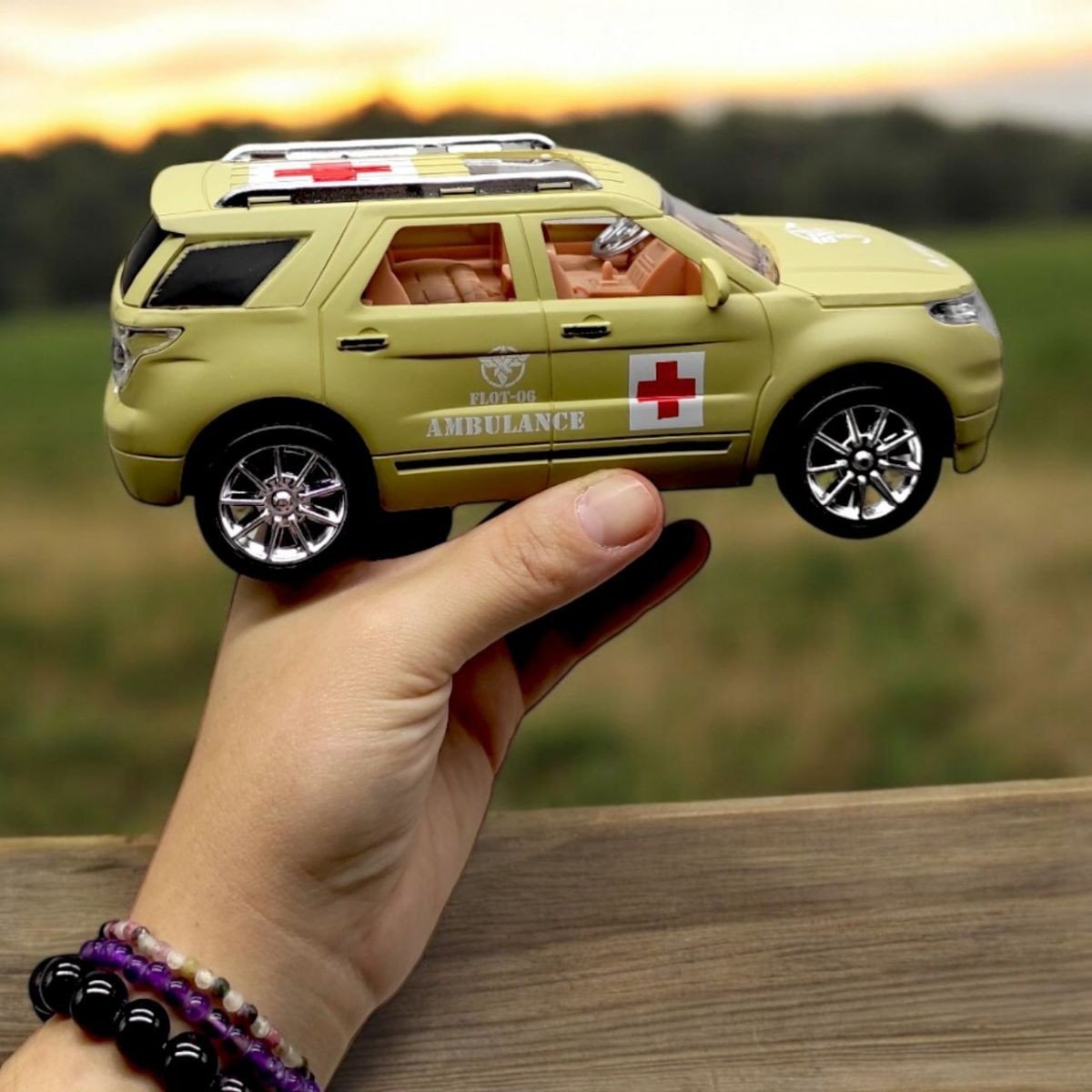 Опис Машинка інерційна "Швидка допомога (військова)", бежева