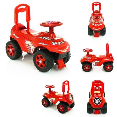 Машинка-каталка "Автошка". Кермо оснащене кнопками, при натисканні на які дитина почує мелодії, пісеньку і правила дорожнього руху. Під сидінням каталки є невеликий багажнічек для речей. Максимальне навантаження - 30 кг.