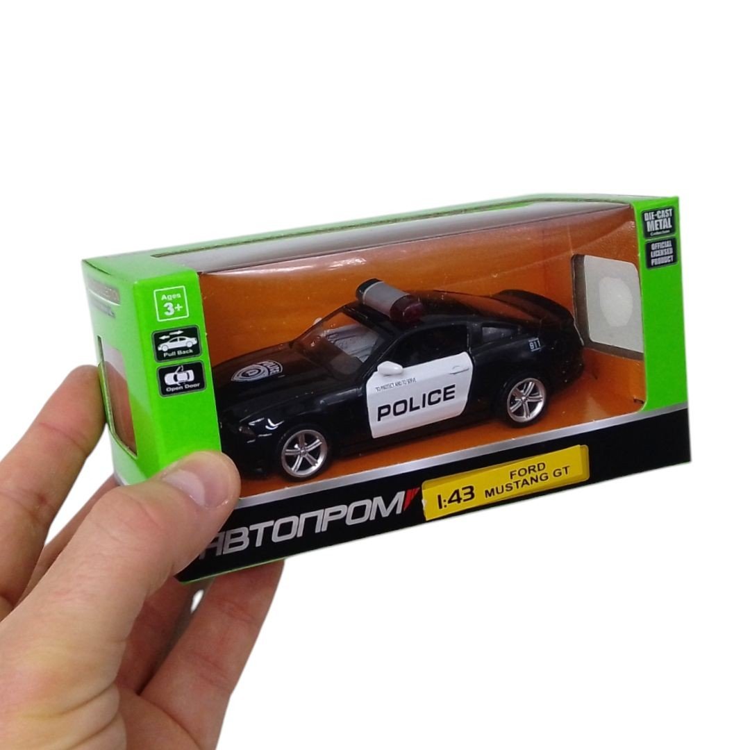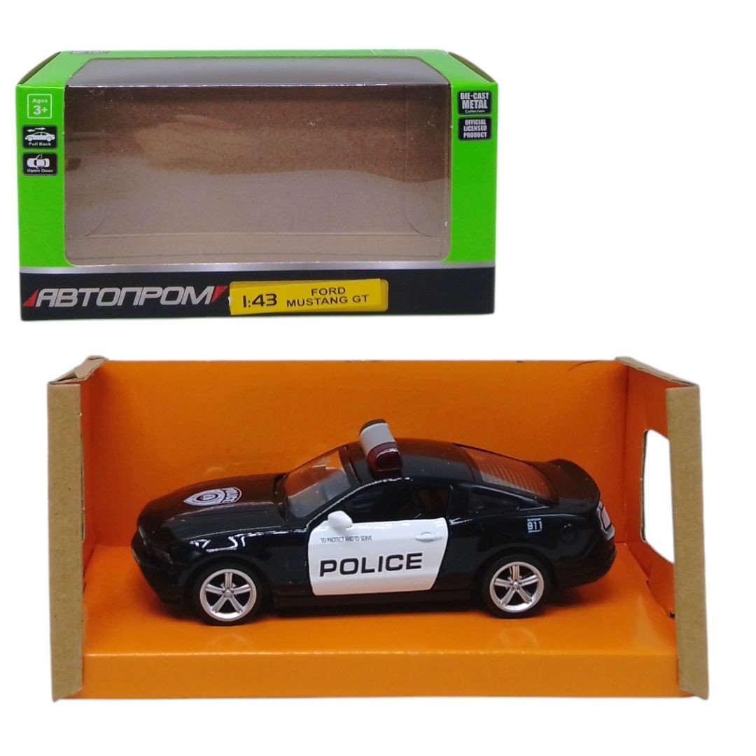 Опис Машинка металева Ford Mustang GT Автопром поліція, інерці, двері (чорна)