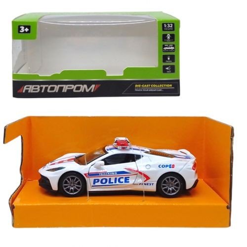 Опис Машинка металева серії Автопром, Поліція світло, звук, двері (біла)