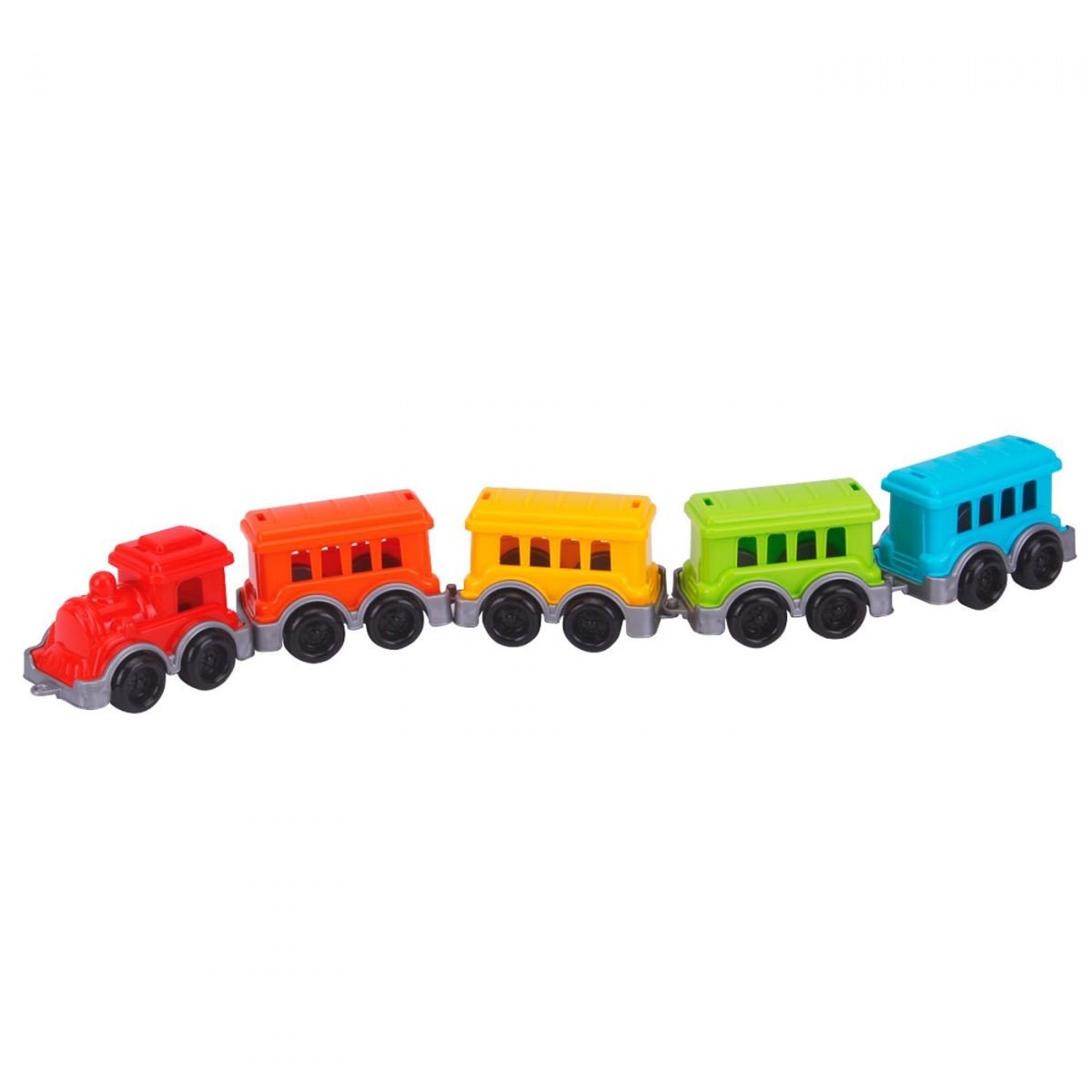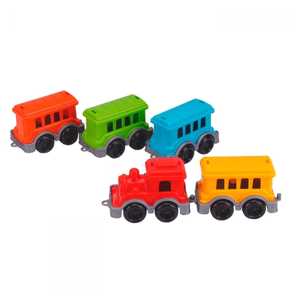 Міні-потяг з вагонами. В комплект входять 4 яскравих вагони та паровоз. Вагони чіпляються один до одного з допомогою гачка. Дуже весела та цікава іграшка. Виготовлено з якісного пластику. Упаковано в сітку.