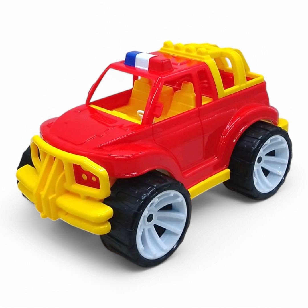 Яскрава пластикова машинка позашляховик з великими колесами. Має водійське місце і пасажирське. Виготовлена з якісного пластика. Різні види в асортименті.