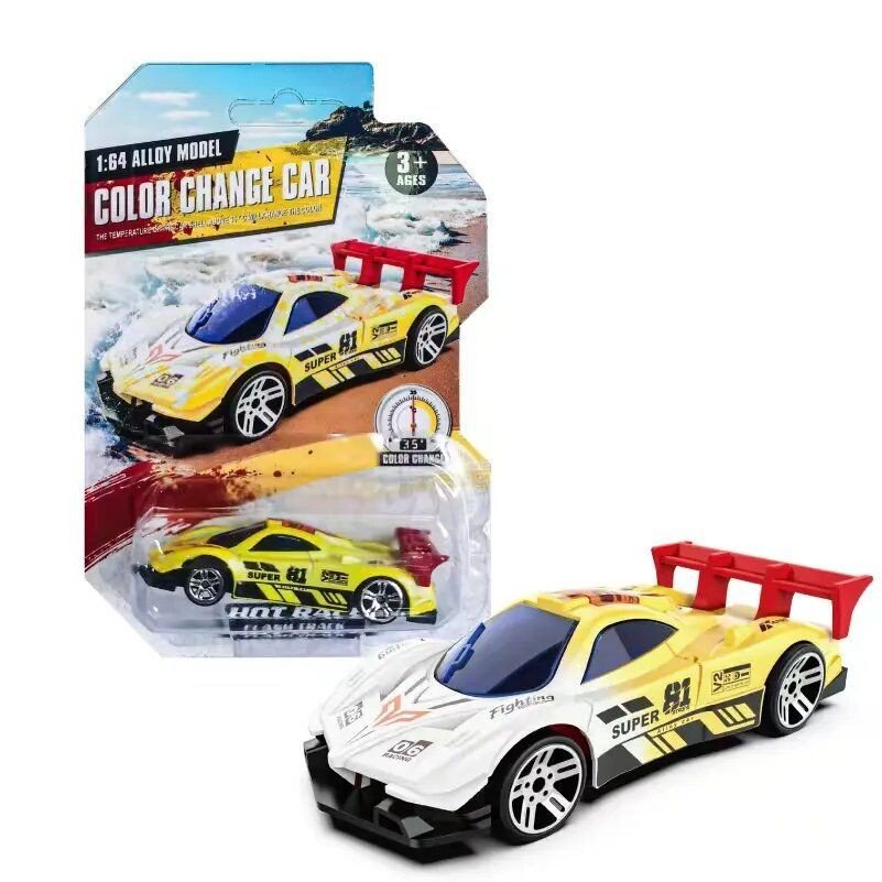 Незвичайна гоночна машинка, котра змінює колір при контакті з водою. Зміна кольору відбувається у воді за нормальної температури приблизно 35 градусів (тепла вода). Довжина машинки - 7 см. Ігри з машинками чудово розвиватимуть у малюка цікавість до світу авто, дрібну моторику, уяву та вміння гратися. Рекомендовано для дітей старше 3-х років.