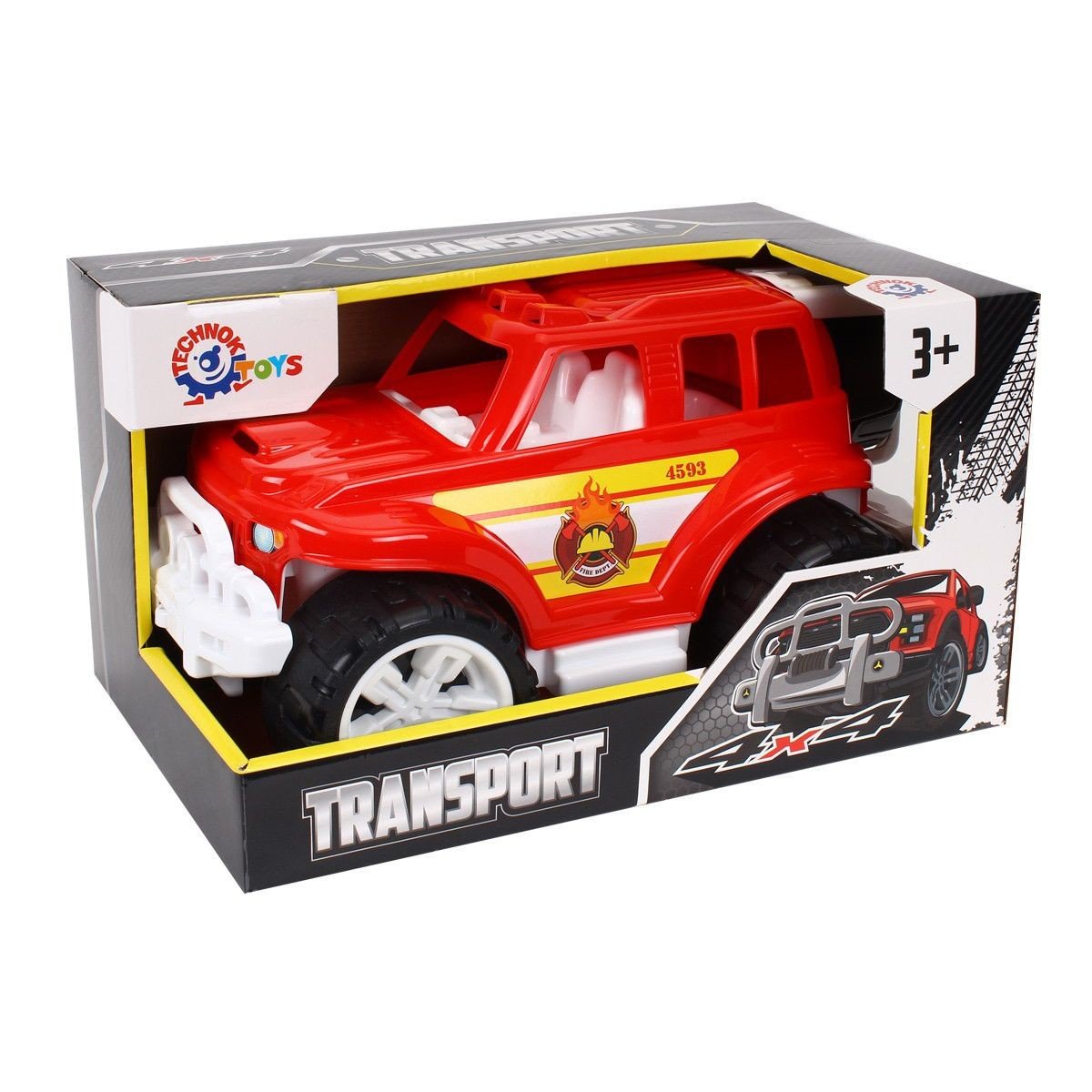 Машинка - позашляховик буде хорошим подарунком дитині. Розмір машинки - 31х21 см., Діаметр коліс - 10 см. Виконана з якісного пластику. Для дітей від 3-х років.