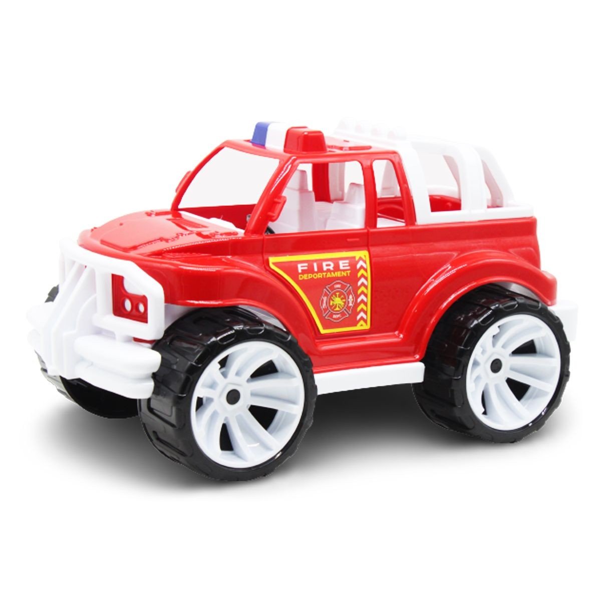 Пластикова машинка-позашляховик "Пожежний". Досить таки великого розміру: 35х20х22 см., Діаметр коліс - 10 см. Виконано з якісного і міцного пластику. Для дітей від 3-х років.