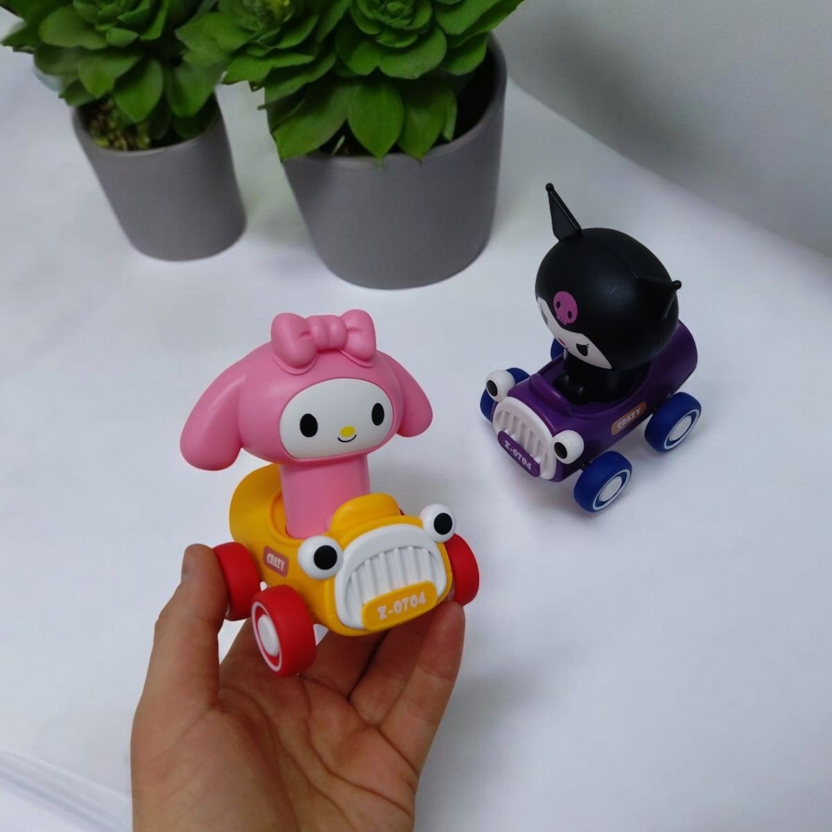 Заводна іграшка у вигляді персонажа Sanrio в машинці - це весела та динамічна іграшка, яка порадує малюків. При повороті голови вона видає приємний тріскотливий звук, а якщо натиснути на голову, машинка швидко спрямує вперед. Компактний розмір робить її зручною для гри вдома та в дорозі.