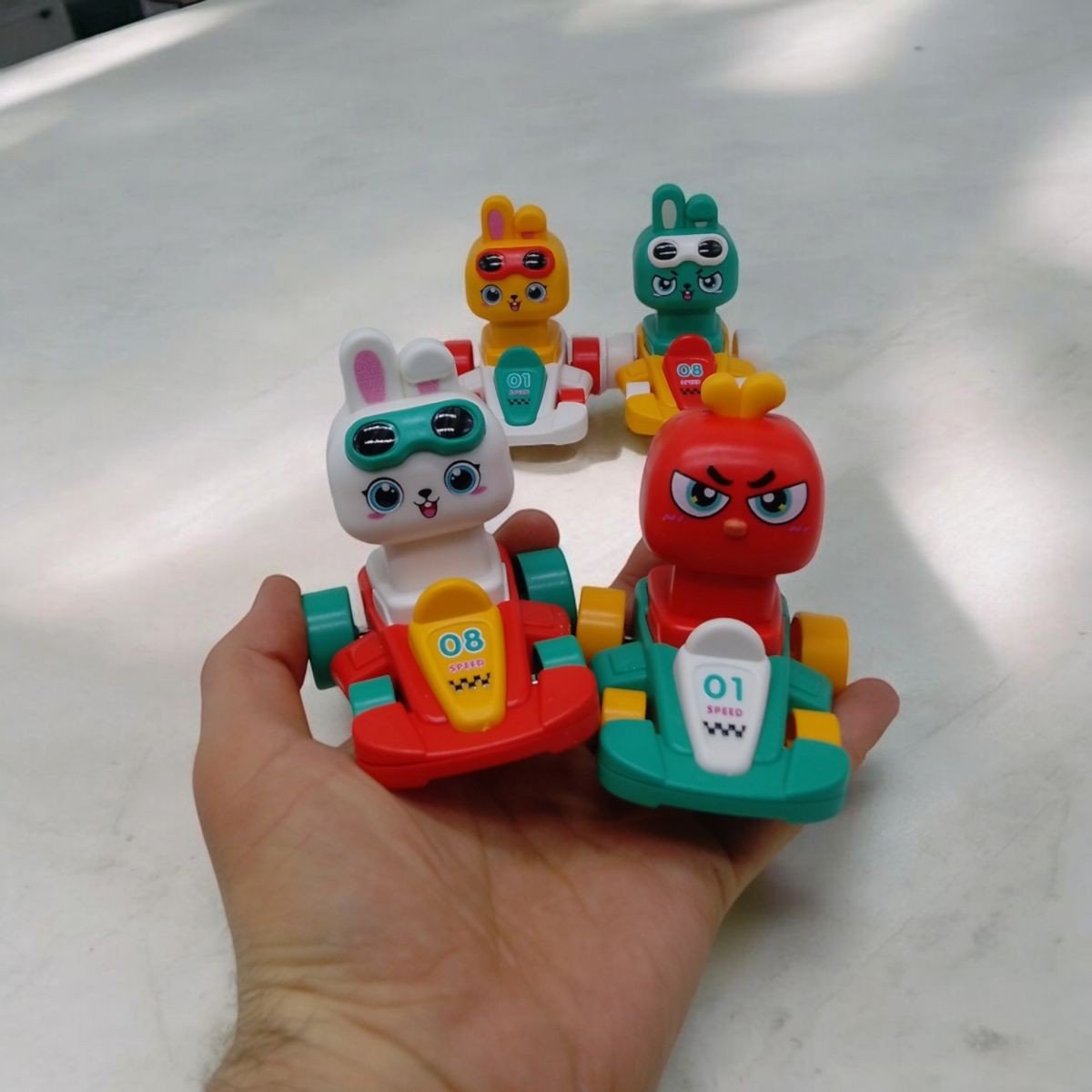 Яскрава дитяча іграшка у вигляді гоночної машинки з милим пілотом - зайчиком чи курчам! Ця іграшка обовʼязково приверне увагу дітей. Просто натисніть на голову пілота, відпустіть, і машинка швидко попрямує вперед, забезпечуючи безліч веселих моментів і захопливих гонок. Розмір – 8 см.