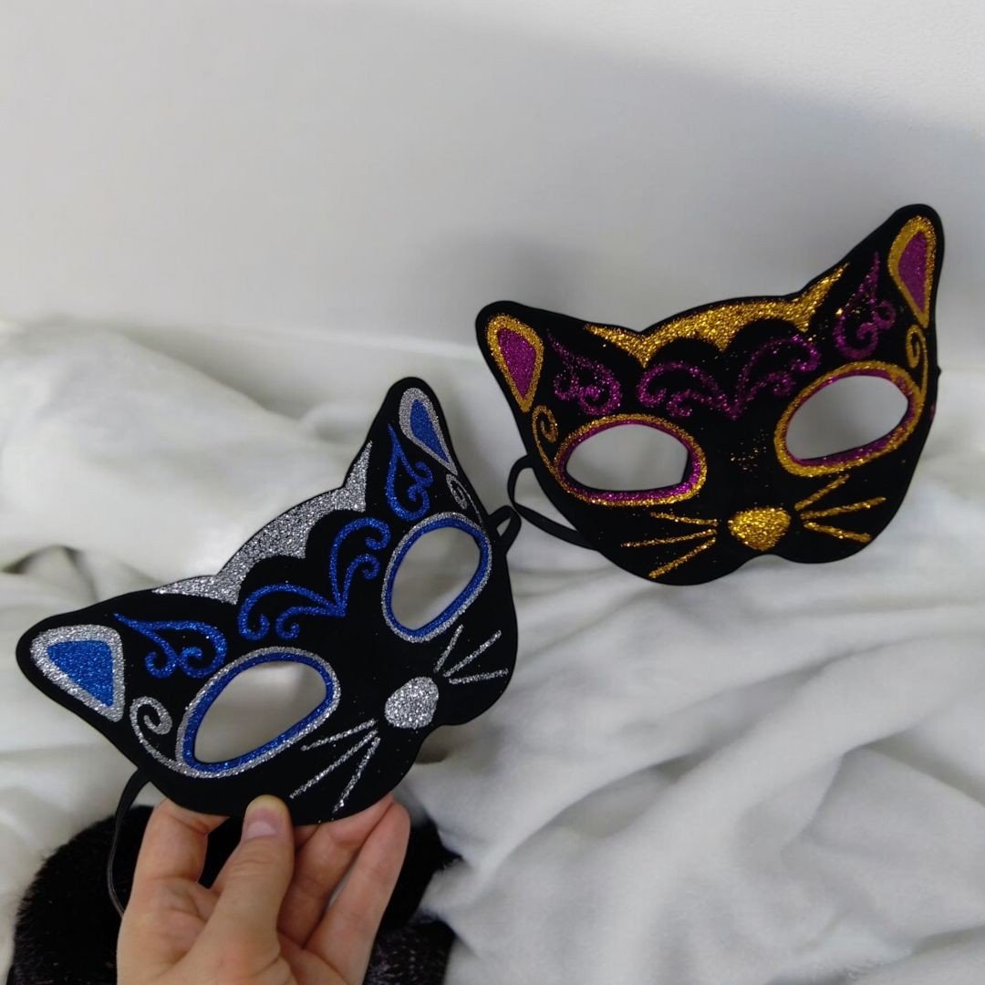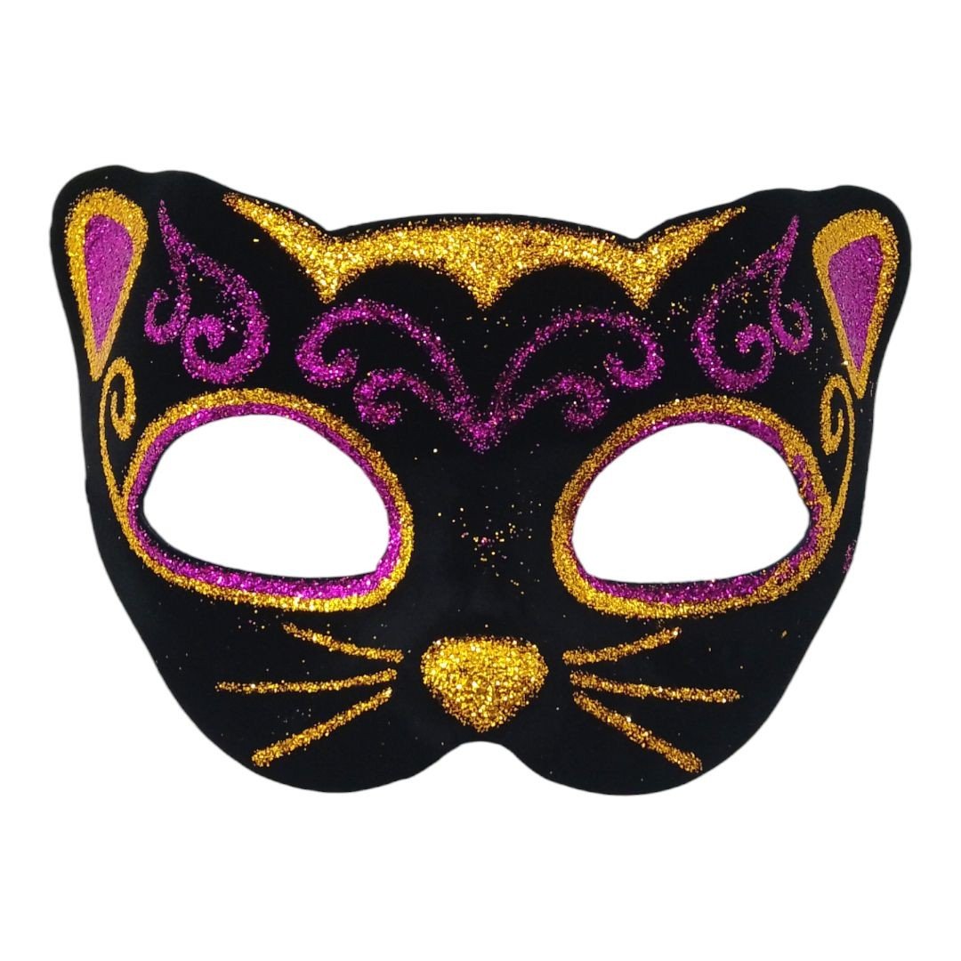 Опис Маска карнавальна з блискітками "Чорний кіт", малинова