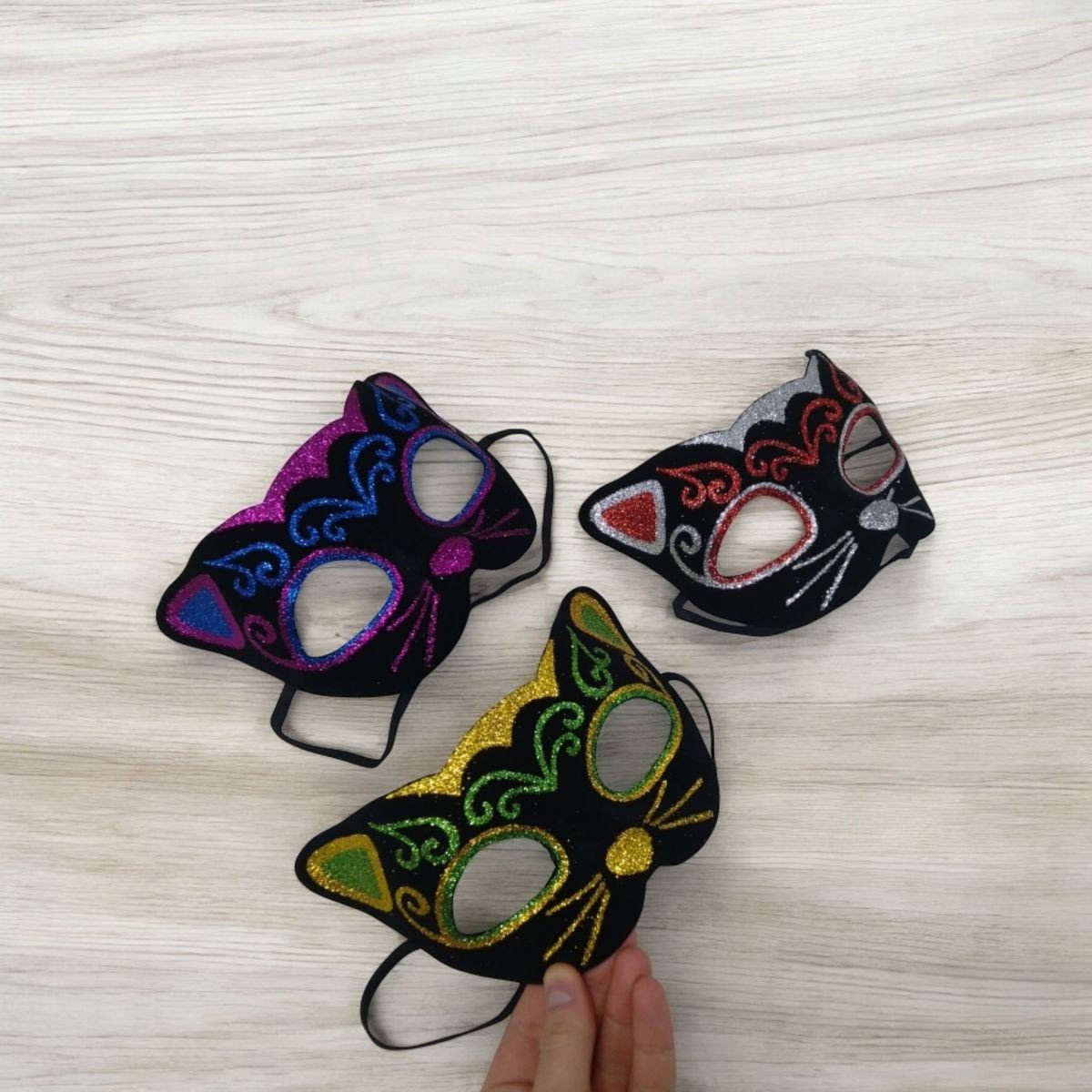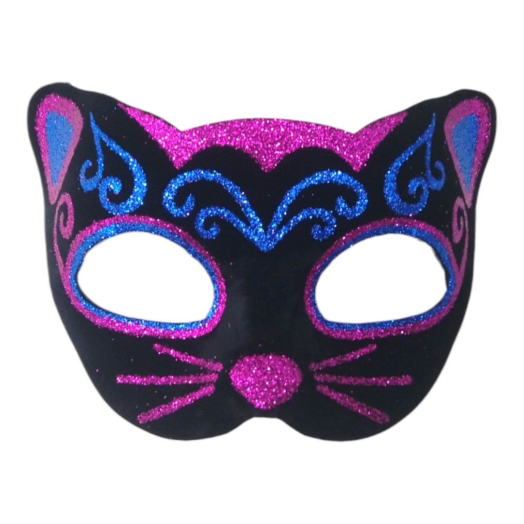 Опис Маска карнавальна Кіт з блискітками синя+ малинова