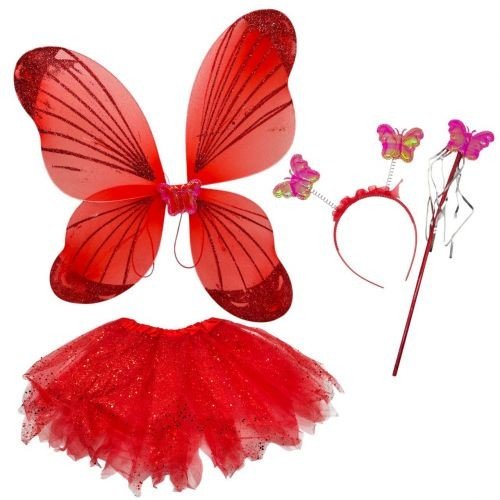 Маскарадний костюм "Крила" з підсвічуванням (крила, спідничка, обруч) ЧЕРВОНІ