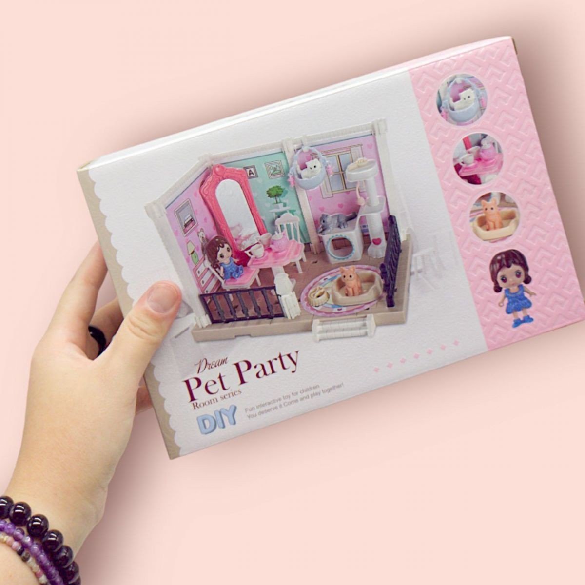 Ігровий набір, що дозволяє створити макет невеличкої кімнати з лялькою та її домашніми улюбленцями. У кімнаті є різноманітні меблі (стіл, стілець, торшер, трюмо, тумбочки...). Усі деталі виконано з міцного та якісного пластику. Розмір кімнати, приблизно, 23,6х15,8х17 см. Рекомендовано для дітей старше 3-х років.