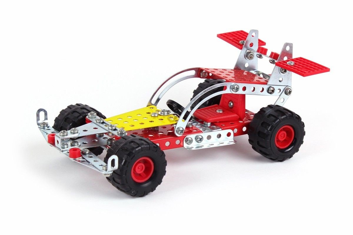 Металевий конструктор "Авто-Дакар" на 173 деталі. Завдяки цій іграшці дитина отримує перші навички зʼєднання деталей гвинтами і гайками, розвиває фантазію і просторову уяву.