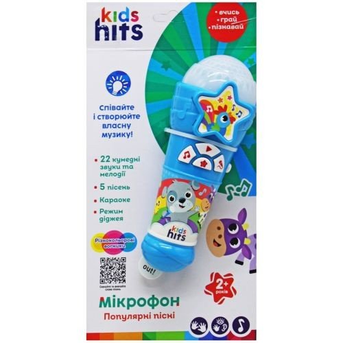 Бренд: Kids hits Мова: Українська Упаковка: Планшет Колір: Різнобарв'я Тип ел-тів живлення: Батарейки (ААА) Кількість ел-тів живлення: 3 Ел-ти живлення в комплекті: Так Вага з упаковкою: 160 г Габарити в упаковці: 14 x 25 x 8.5 см Країна виробник: Китай Матеріал: Пластик Комплектація: Мікрофон