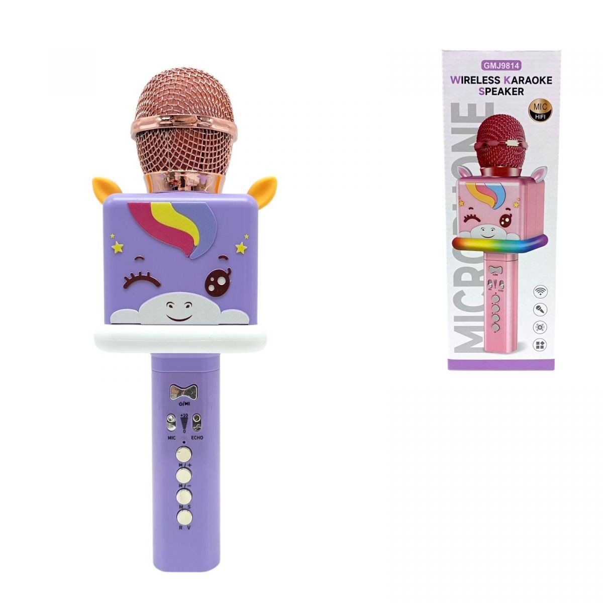 Мікрофон із підсвічуванням перетворить будь-який день на справжнє свято! Яскравий дизайн, ефекти зміни голосу та різноколірне світло створюють атмосферу справжнього шоу. Завдяки Bluetooth можна легко підключати улюблені треки, співати соло або влаштовувати караоке з друзями. Мікрофон має зручні кнопки для перемикання пісень, регулювання гучності та відлуння, а також підтримує TF-карту і USB. В колекції присутні різноманітні замовлення у стильному дизайні з поні.