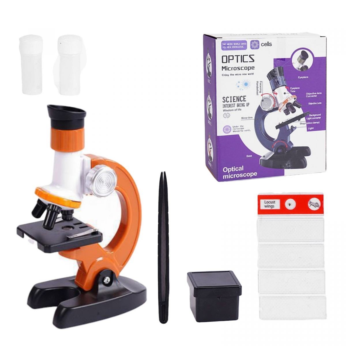 Модель дитячого освітнього мікроскопа, оснащеного підсвічуванням для забезпечення достатнього освітлення під час використання, збільшувальною лінзою та додатковим обладнанням, призначена для ігор та початкового знайомства дітей з наукою. З його допомогою можна побачити мікроскопічні обʼєкти з трьома режимами збільшенням; х100 / х400 / х1200, що дозволить розглянути найдрібніші предмети. Збільшення та зміна кольора підсвітки регулюється шляхом обертання деталей.