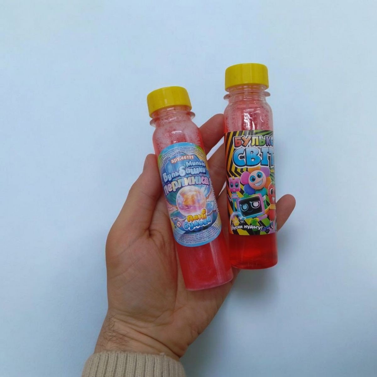 Мильні бульбашки 100 мл з ароматизованим розчином - це яскрава розвага для дітей та дорослих! Флакон зручно тримати в руці, а легкий аромат робить гру ще приємнішою. Бульбашки виходять великі, міцні і переливаються всіма кольорами веселки. Відмінний вибір для свят, прогулянок та веселих ігор на свіжому повітрі.