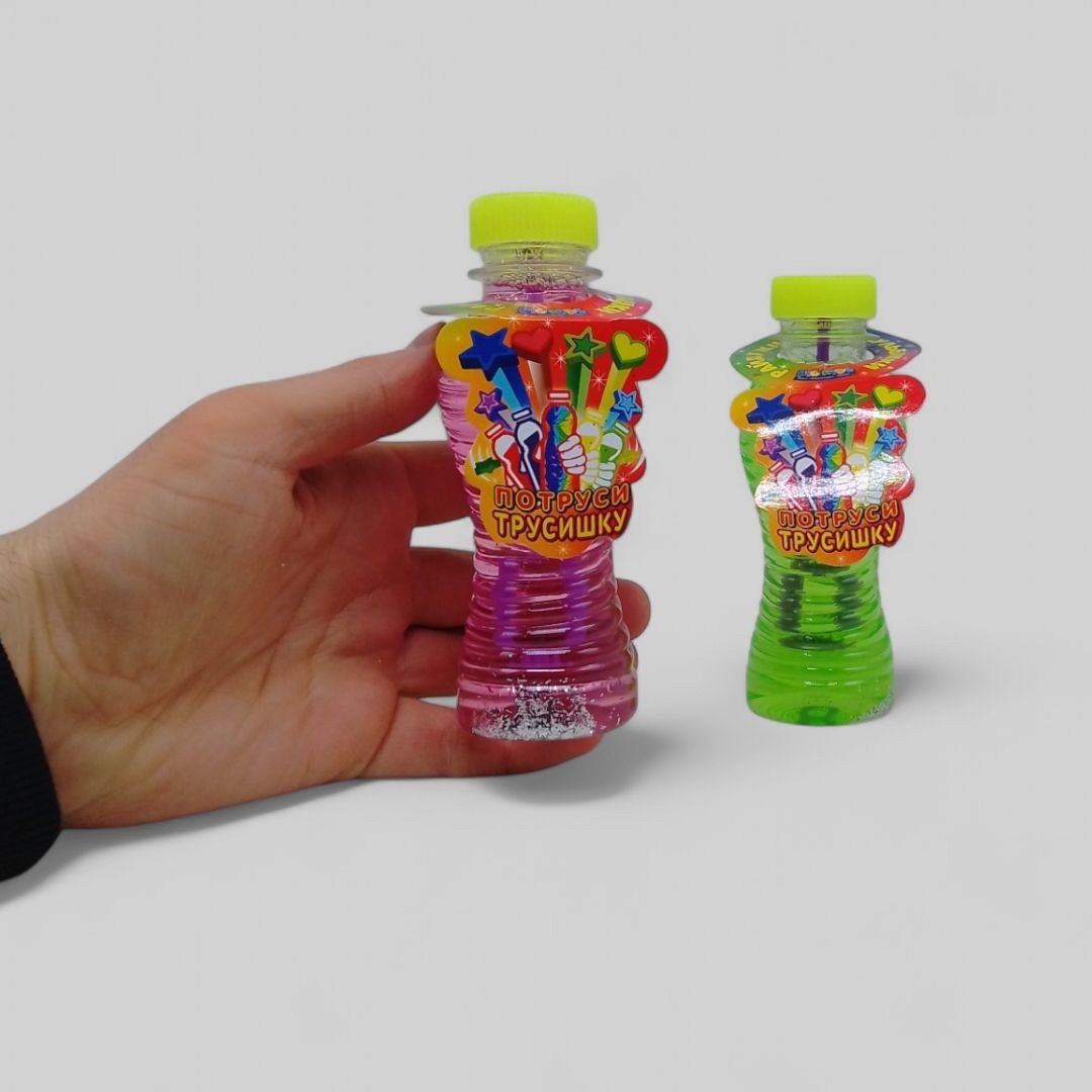 Мильні бульбашки "Райдужні бульбашки". Обʼєм пляшечки – 150 мл. З глітером. Рамка із 2-х секцій. Різні кольори.