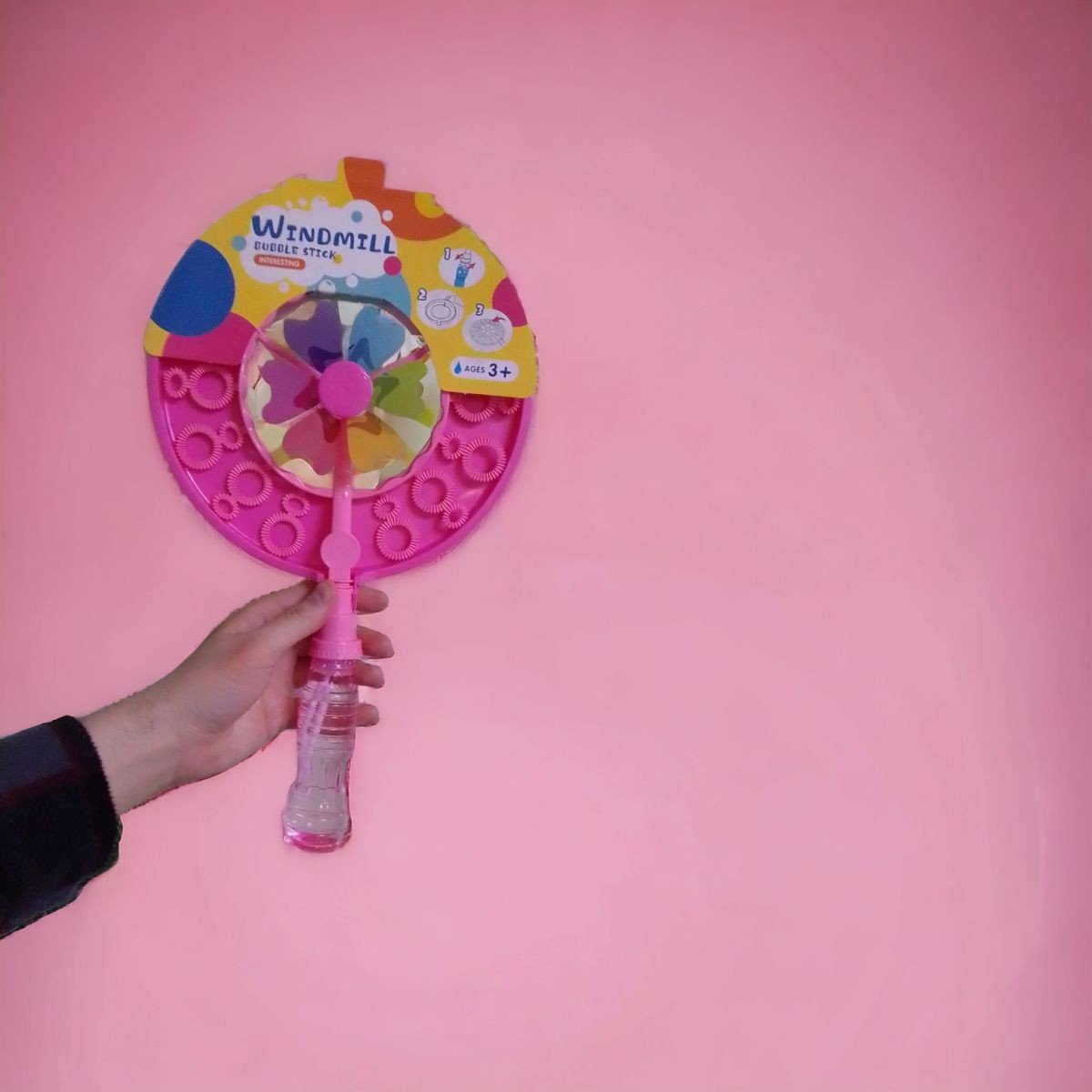 Оригінальний набір, з яким дитина зможе запускати безліч бульбашок. Рамка для запускання бульбашок кругла, а посередині знаходиться кольоровий вітрячок. Мильний розчин потрібно налити у спеціальний лоток, який також входить до набору. Далі можна опустити рамку в розчин і помахати нею в різні боки, щоб запустити велику кількість бульбашок.