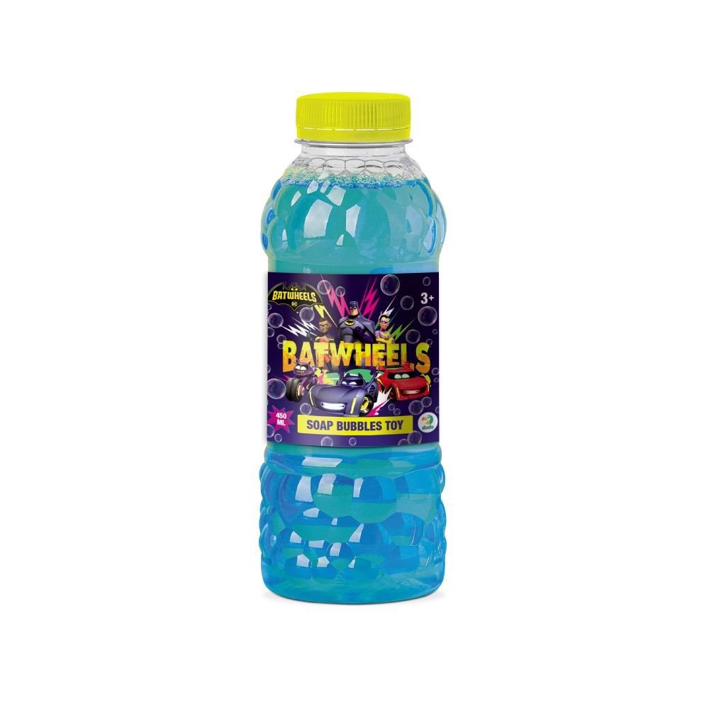 Мильні бульбашки (запаска). Пляшечка виконана у стилістиці супер героїв популярного мультсеріалу "Batwheels". У наборі немає рамки для пускання бульбашок. Гра з бульбашками розвиває фантазію, а ловлячи бульбашки ще й координацію рухів. Має приємний запах. Обʼєм пляшки - 450 мл.