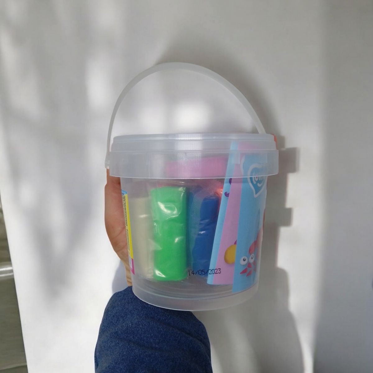Бренд: Окто Вік: 3 роки Упаковка: Відро Колір: Різноколір Вага з упаковкою: 220 г Габарити в упаковці: 10 x 10 x 10 см Країна виробник: Україна Матеріал: Комбінований Комплектація: 10 кольорів тіста, пластиковий ножик та формочки
